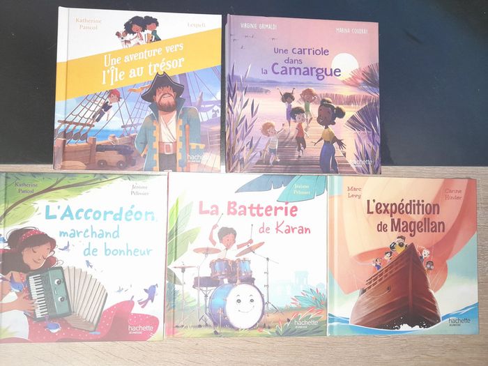 lot 5 livres Mc Do - l'accordéon marchand de bonheur (sous blister) - la batterie de Karan - l'expédition Magellan (sous blister) - une aventure vers l'île au trésor - une carriole dans la Camargue #livreenfantscoubi62