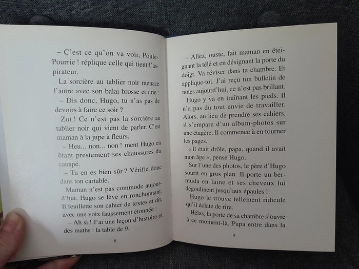 livre Nathan - Mon papa, c'est moi ! 7-9 ans La vie est bien dure lorsqu'à huit ans, on doit apprendre ses leçons tous les soirs et que les bulletins scolaires ne sont pas brillants brillants. Et quand en plus on a sur le dos un papa qui vous répète que lui était le premier de la classe. Hugo en a vraiment assez. Aussi quand un personnage de son livre d'Histoire lui propose d'aller faire un tour dans le passé, il ne résiste pas. Le voilà bientôt à la place de son père, chez ses grands-parents, devenus ses parents par la force des choses. Et apparemment, le papa premier de la classe a bien du mal à réciter ses leçons et à délaisser la télévision, une antiquité à deux chaînes en noir et blanc . Voilà une aventure dont bien des générations d'enfants ont dû rêver. Armée d'humour, Elsa Devernois permet enfin aux jeunes lecteurs de réaliser leur souhait le plus cher : vérifier si papa et maman étaient autrefois les enfants modèles qu'ils prétendent. #livreenfantscoubi62