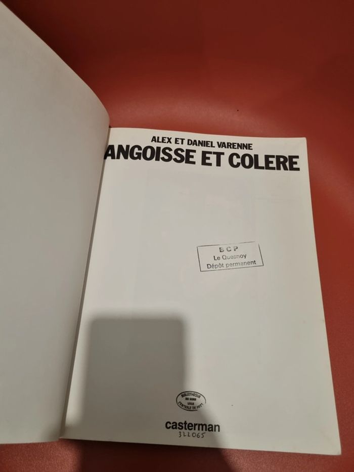 BD ~ Angoisse et colère ~ BD ~ occasion sortie inventaire bibliothèque propre, pas d'odeur , taches pages de garde intérieur, deux tampons bibliothèque (voir photos) pour apprécier l'état Angoisse et colère Alex et Daniel Varenne Casterman, les romans ( a suivre) autres bd divers et varié tout au long du dressing..; #bdscoubi62