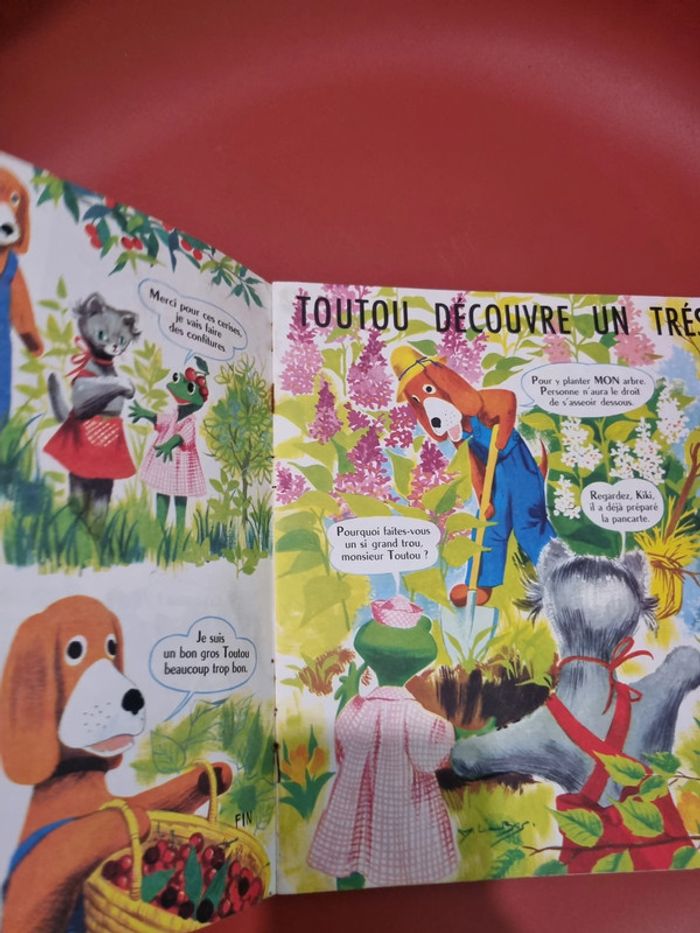 Livre vintage de Toutou kiki et zouzou livre vintage ORTF 1967 -- état très moyen Prix en conséquence... Voir les photos pour apprécier l'Etat bout de scotch intérieur trace de crayon couleur 2eme page traces intérieur couverture Ce livre offre 6 belles histoires pour les petits prix en baisse le 11-09 idem le 07/10