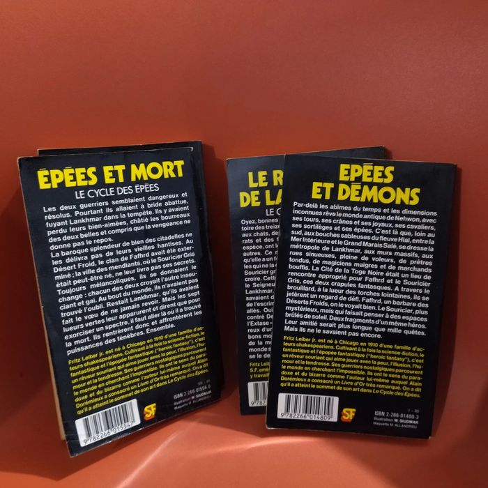 lot 4 livres le cycle des épées Fritz Leiber héroic Fantasy épique 1983 bon état général/ état moyen -- livres piqués par le temps et/ou humidité - ils sont tachés sur la tranche et la première page début et fin. -- Ils n'ont pas d'odeurs -- le reste du livre n'est pas taché ce sont des anciennes éditions imprimées en 1985 .....