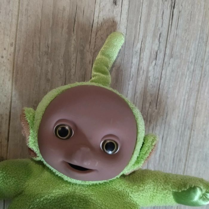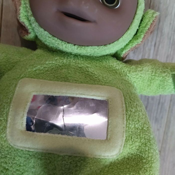 peluche hochet TELETUBBIES vert Dipsy - Tomy - bon état vends une peluche de Dipsy, teletubbies vert, il fait un bruit de hochet quand on le secoue en bon état, quelques traces sur le visage, miroir chiffonné, pastille teletubbies sur les fesses effacée à moitié 23 cm environ sans l'antenne (29 cm avec l'antenne) #peluchesenfantscoubi62
