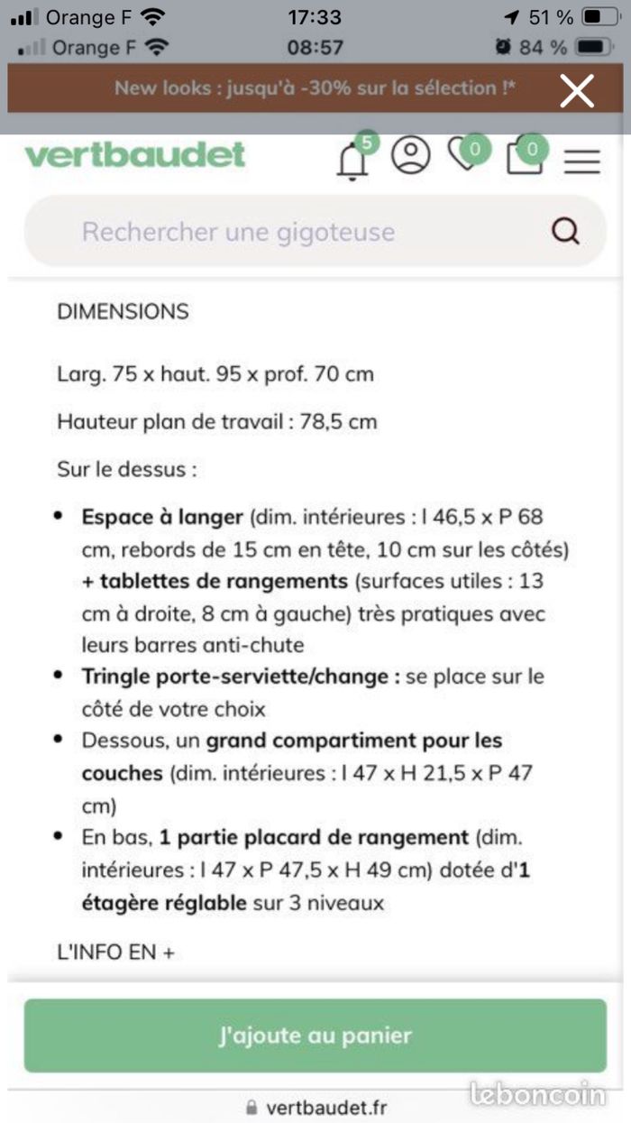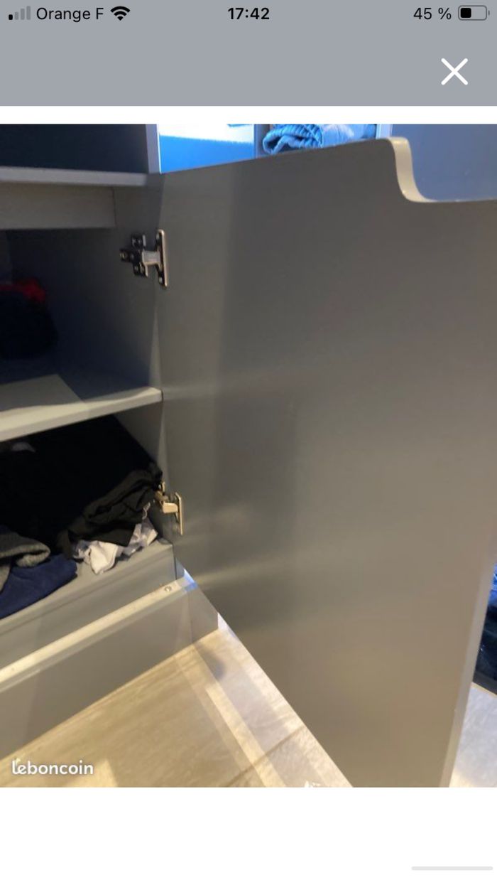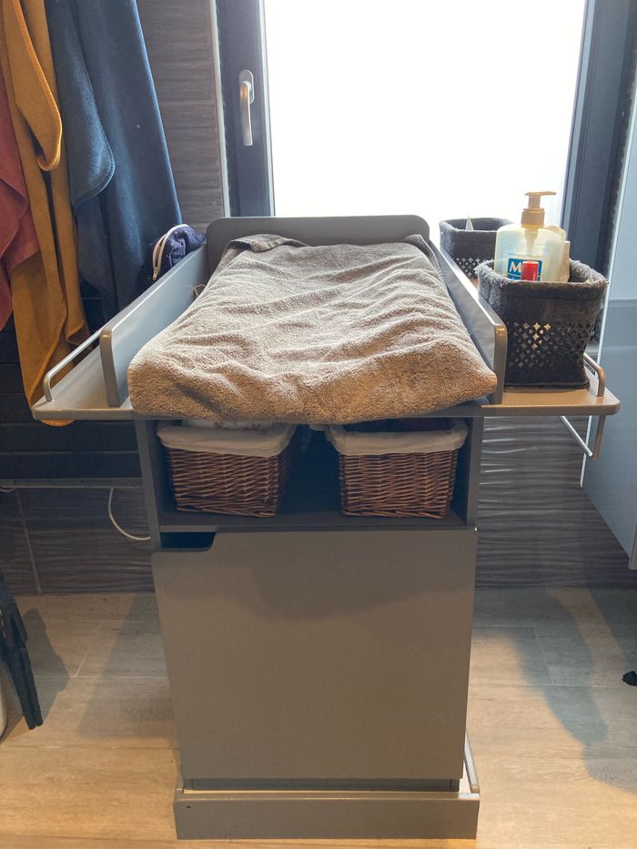 Table à langer verbaudet gris Avec rangement idéal pour y mettre les vêtements de bébé. En très bon état Pas d’envoi