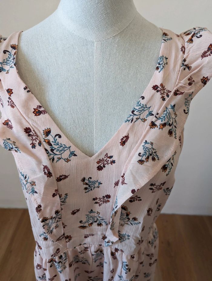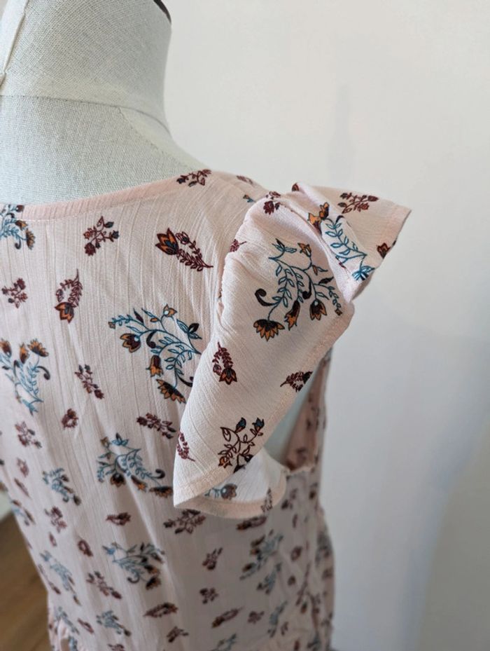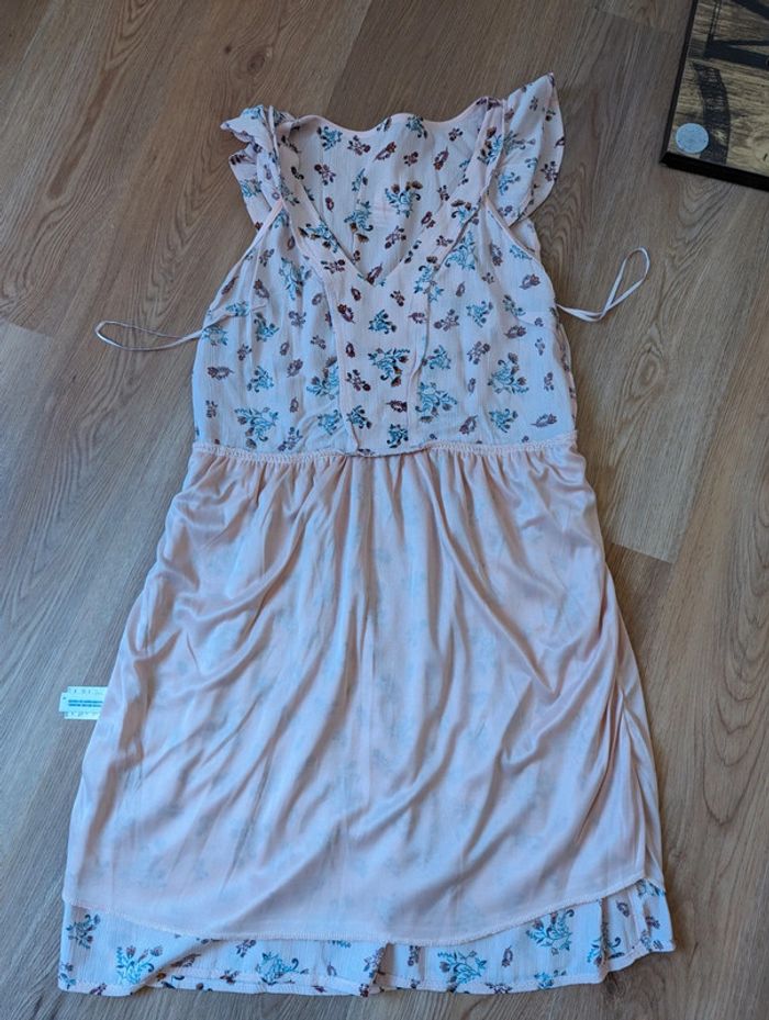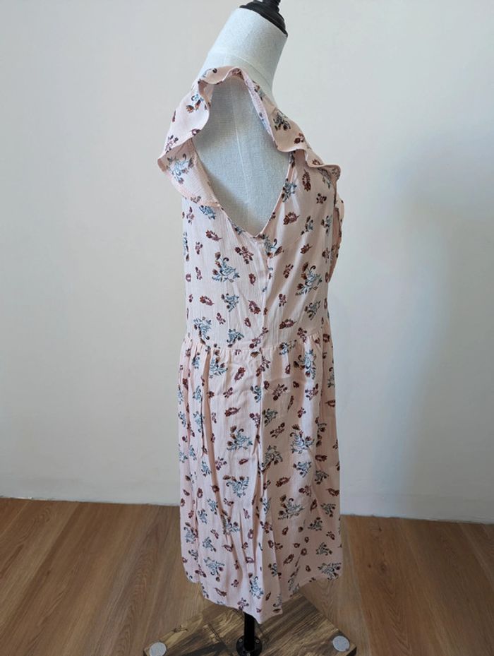 Robe à petites manches volantées Etam Modèle Volla Taille 38 Neuve avec étiquette Doublure sur le bas de la robe Rose avec imprimé fleuri / motif floral Longueur de l'épaule jusqu'en bas 96,5 cm 100% viscose et doublure polyester Très jolie Made in France #robe #neuf #été #etam #fleur #rose #robeMavelda #38 #38mavelda #madeinfrance #neufmavelda #étémavelda