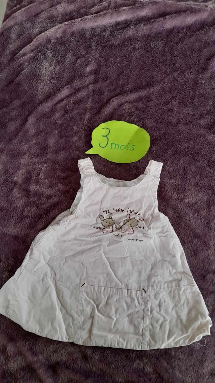 Robe à bretelles rose pâle, message " message petite famille maman bébé papa" un peu passé au lavage (voir photo)