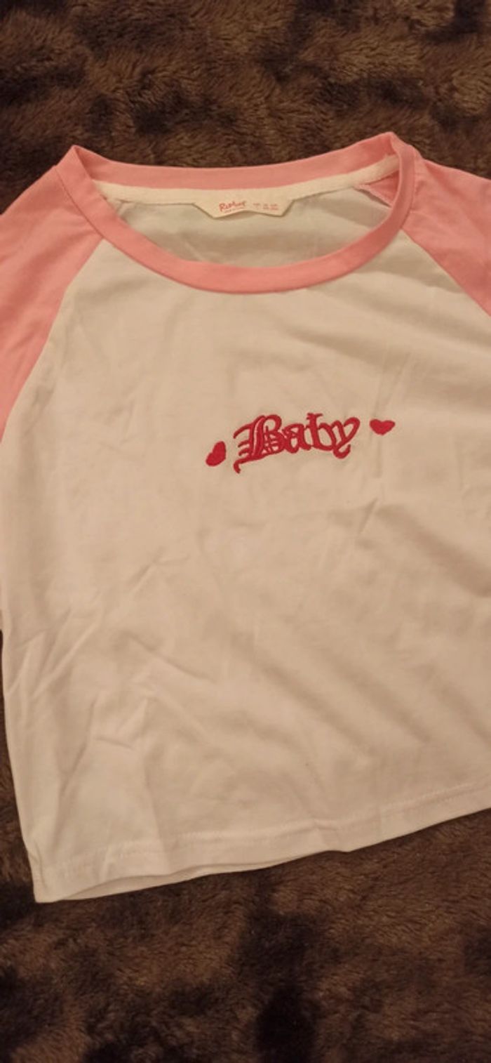 Livré le jour même si la commande à été faite avant 17h, sinon livré dès le lendemain 🥰 Crop Top Mignon blanc avec broderie "❤️Baby❤️" Taille L De la marque Romwe Neuf sans étiquette 7,99€ #kawaii #mignon #croptop #romwe
