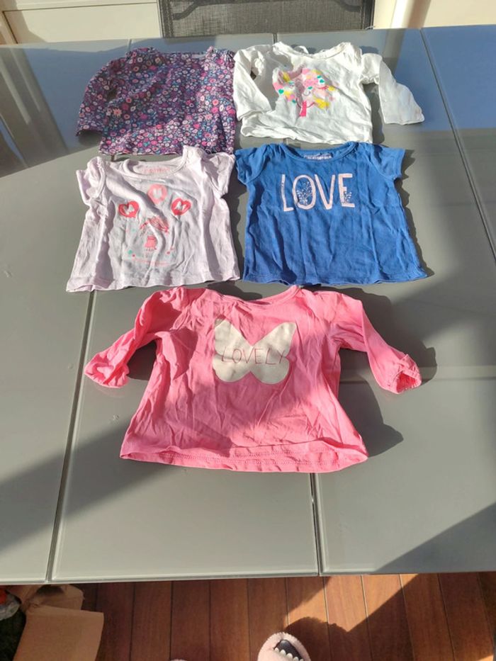 Lot t-shirts bébé fille 9 mois - photo numéro 1