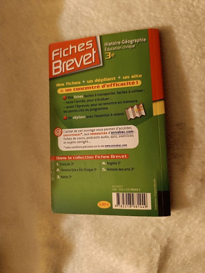 Livre Fiches Brevet Histoire géographie et EMC 3ème Résumé des cours en quelques pages, cartographies, ultra pratique pour les révisions. ISBN : 978-2-218-98144-9 HATIER Prix neuf 5€90 État : Très bon à bon, des pages soulignées et des croix, cf photos. ⬇️ ⬇️ ⬇️ ⬇️ ⬇️ 💐Réduction sur Lot jusqu à - 50% 💐Prix Négociable #️⃣ Liens par hashtags : #emy0316livres #emy0316Affairesscolaire #emy0316Filles #emy0316Garçons #emy0316taille16ans #emy0316taille15ans #emy0316taille12ans #emy0316taille13ans #emy0316taille14ans #emy0316articlesa2euros #petitprix #jeusurconsole #histoire #frenchhistory #history #france #français #brevet #annabrevet #brevetdescolleges #revisions #fiches #apprendre #ludique #qcm #questions #reponses #frises #cartographie #chronologique #cartographique #rois #rennes #napoleon #louis #bonapart #ecm #educationcivique #histoiregeo #cours #resume #ado #girly #fille #garçons #boys #brevet #educatif #education #leçons #leçonsdhistoire #culture #cultive #brevetdescollegues #baccalaureat #bac #adultes #enfants #adolescents #college #livrederevision #hatier #fichesbrevet #fichesbrevethistoire #depliant #enfant #scolaire #scolarité #autonome #bosser #lernen #noel #gift #christmas #present #cadeau #anniversaire #birthday