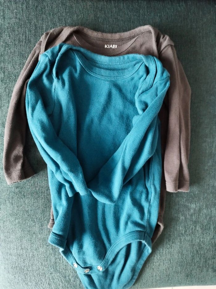 Lot de deux bodys manches longues 12 mois 73/76 cm de la marque kiabi État ni kel pas de tâches pas de trous Un couleur gris foncé voir noir et l'autre bleu. #bebe12mois #bebegarcon #bebegarcon12mois