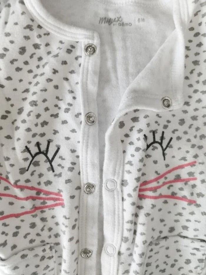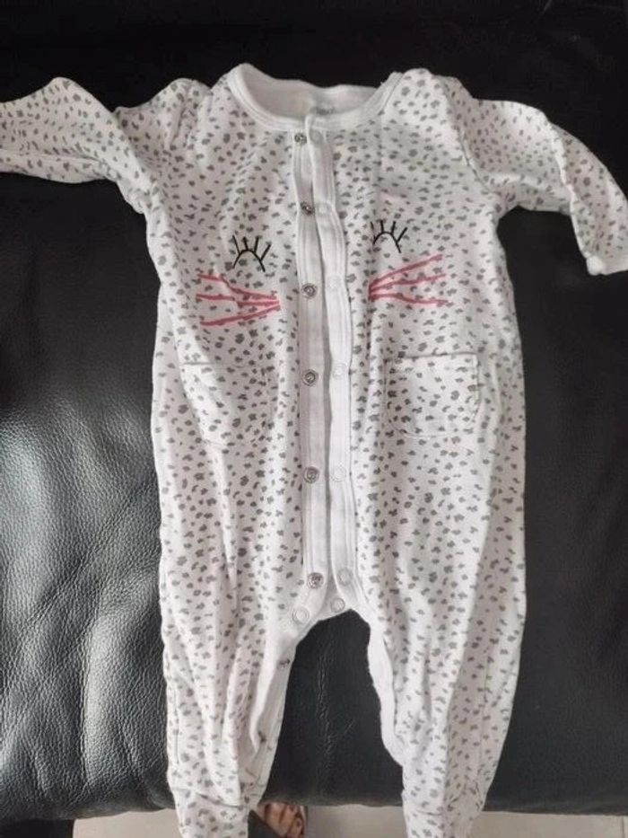 Bonjour , 1 pyjama blanc plutôt léger chat marque Gémo taille 6 mois ouverture par devant. État nickel pas de tâches pas de trous #6moisfille