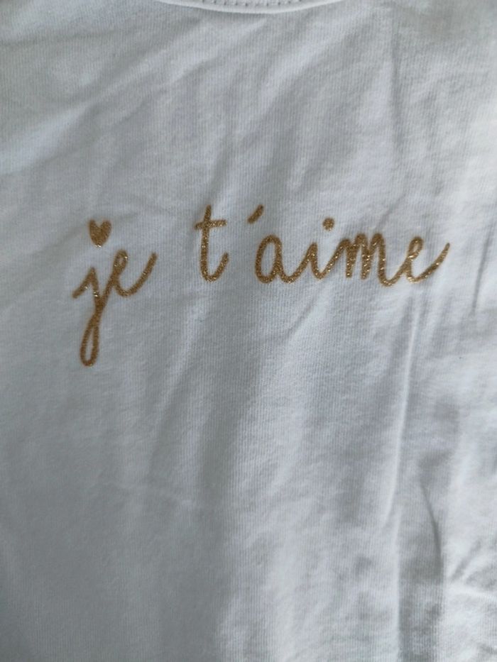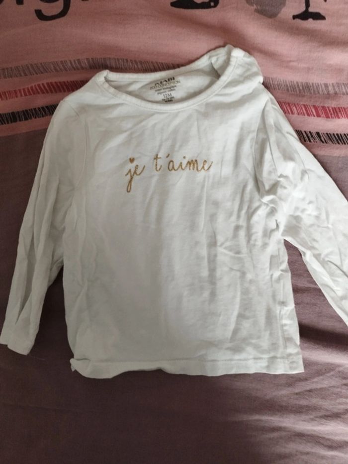 T shirt en 12 mois fille de la marque Kiabi 73/76 cm couleur blanc et écriture en doré État nickel Pas de taches pas de trous #9moisfille #12moisfille