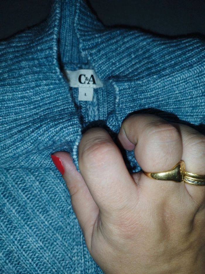 Pull femme taille L( taille grand) de la marque C&A col roulé couleur bleu gris comme sur la dernière photo où il y a la taille manche un peu style chauve souris en "laine" Pas de tâches pas de trous #pullfemme #tailleL