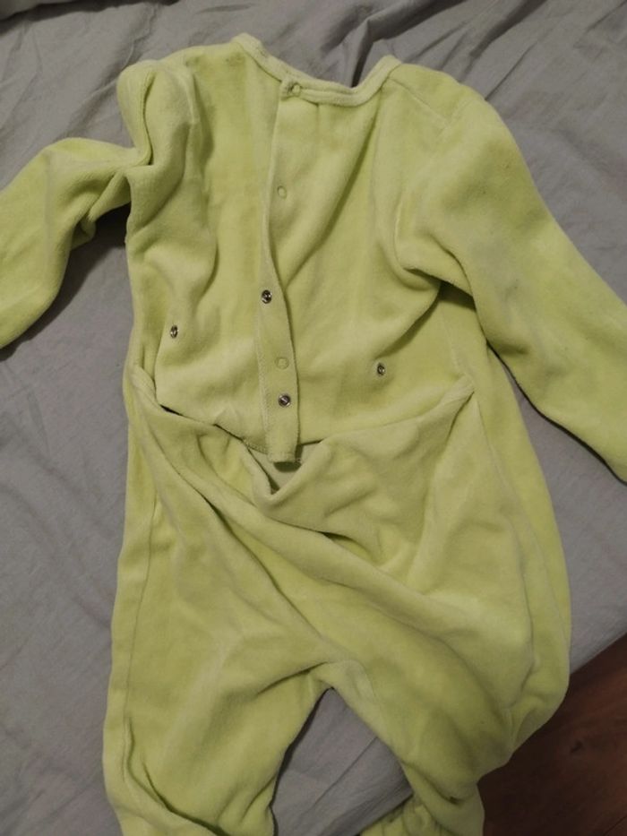 Bonjour, Pyjama de la marque kimbaloo ouverture par derrière couleur" jaune vert" en parfait état. Pas de tâches pas de trous !