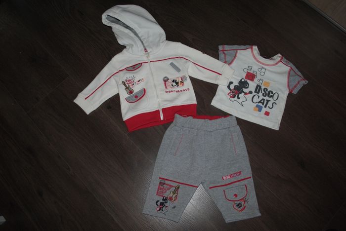 Ensemble jogging garcon 3 mois composé d'un bas, dxun t shirt MC et d'une veste Marque tissaia