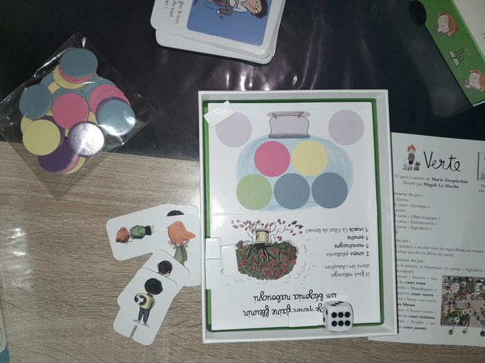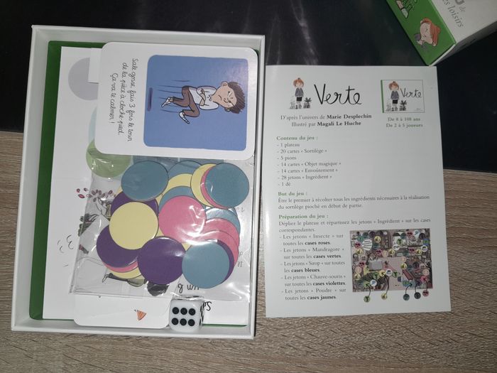 jeu école des loisirs - Verte complet en très bon état Prouvez vos talents d’apprenti(e) en réalisant des sortilèges. Parcourez le plateau, récoltez des ingrédients et utilisez les bons objets magiques pour être le premier à jeter votre sort. Prenez garde aux envoûtements lancés par vos adversaires. Un jeu plein d’humour et de stratégie pour les sorcières et sorciers en herbe !(1 plateau, 48 cartes, 5 pions, 28 jetons, 1 dé). 2 à 5 joueurs. Durée du jeu : 15 mn.
