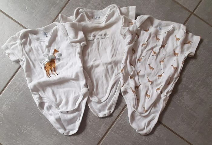 Lot 3 bodies mixte manches courtes mots d'enfants 9mois celui du milieu est tâcher au col voir photo