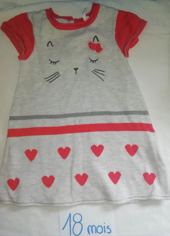Très jolie robe 18 mois Orchestra chat coeurs N'hésitez pas à faire un lot, une réduction jusqu'à 50 % s'applique automatiquement. Vous pouvez voir la totalité des 18 mois en cliquant ici #wallaby59taille18mois ou d'autres tailles dans à propos, mon dressing y est classé par âge.