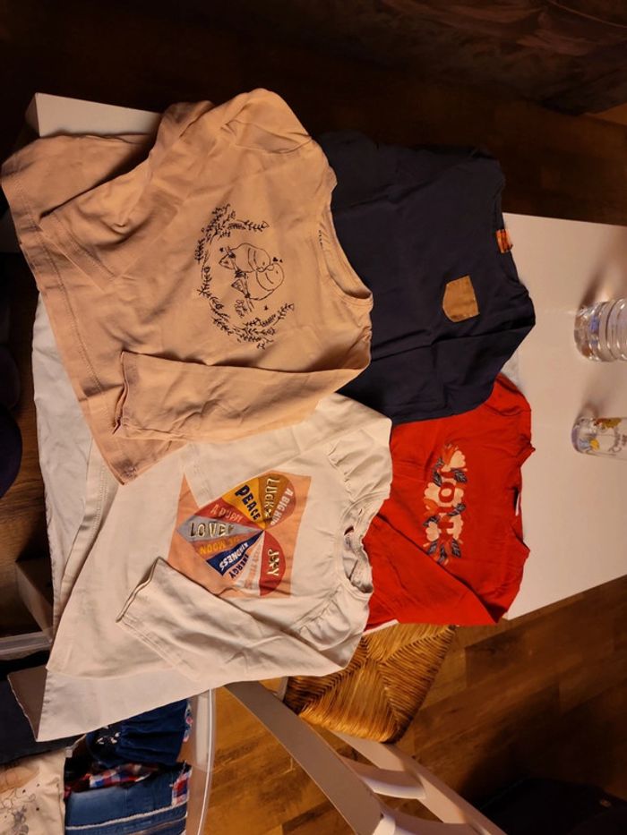 3 tee shirt tao 3 ans 96 cm (rouge, blanc et bleu marine) 1 tee shirt kiabi 3 ans 90/97 cm (rose)