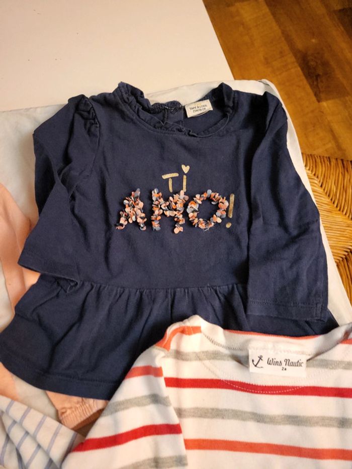 2 tee-shirt ML tao 23 mois 86 cm avec 3 boutons pression à l'arrière pour fermeture Un tee shirt ML Wins nautique 2 ans taille petit (peu porté) Un tee-shirt ML harry potter 24 mois