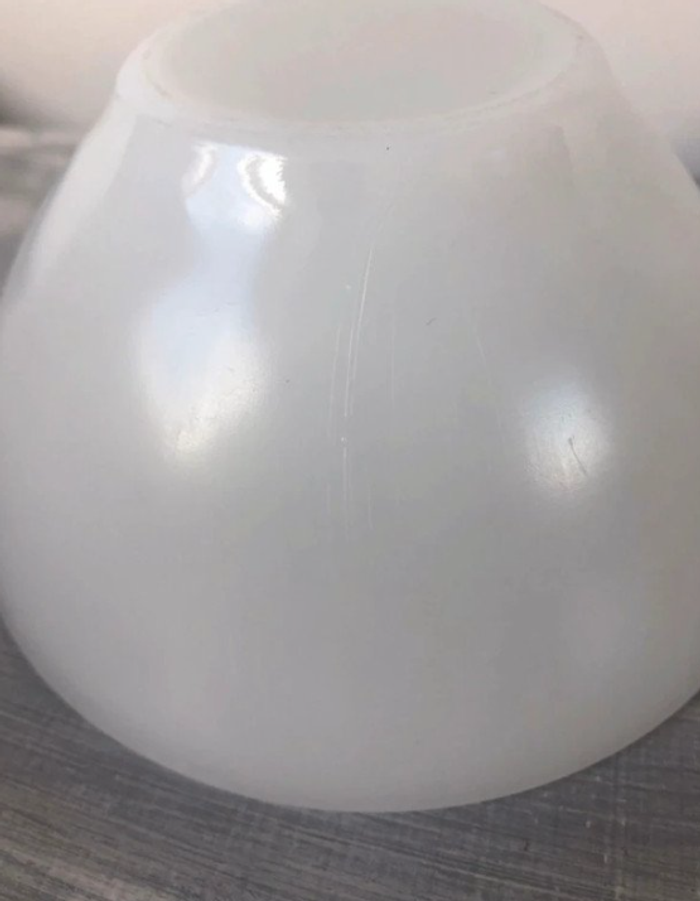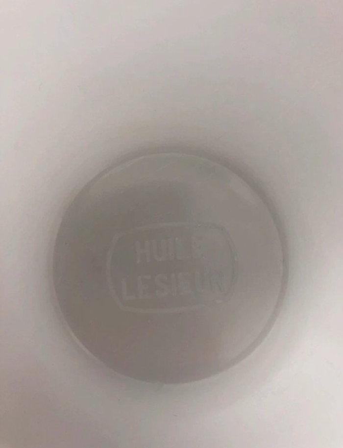 Fabriqué en France De la marque huile Lesieur aspect blanc nacré, minimes rayures très peu visibles (voir photo), 7cm de hauteur et 13,5cm de diamètre