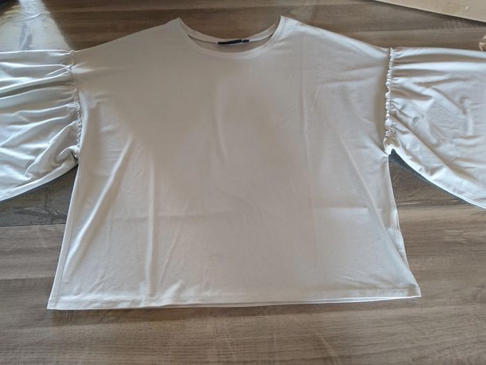 ⚠️ Description complète → Plus ⚠️ Blouse à manches 3/4 Marque Kiabi Taille XL, 46-48 • Coloris gris clair • Manches larges • Tissu fin, fluide • Petites taches Largeur aisselle à aisselle non étirée : 61 cm Largeur aisselle à aisselle étirée au maximum : 93 cm Longueur totale : 60 cm Longueur aisselle : 27 cm En bon état #evelyne_taille_46 #evelyne_taille_48