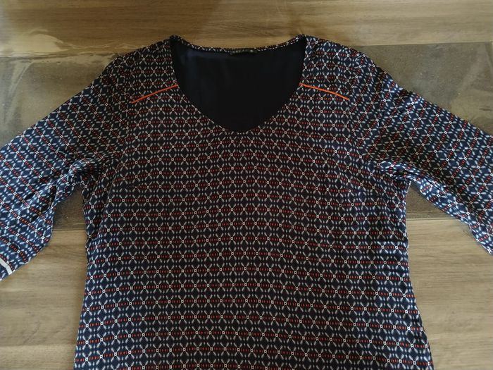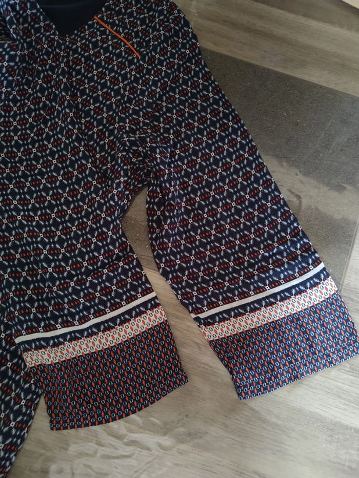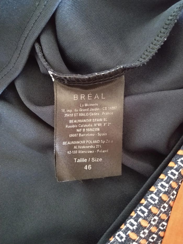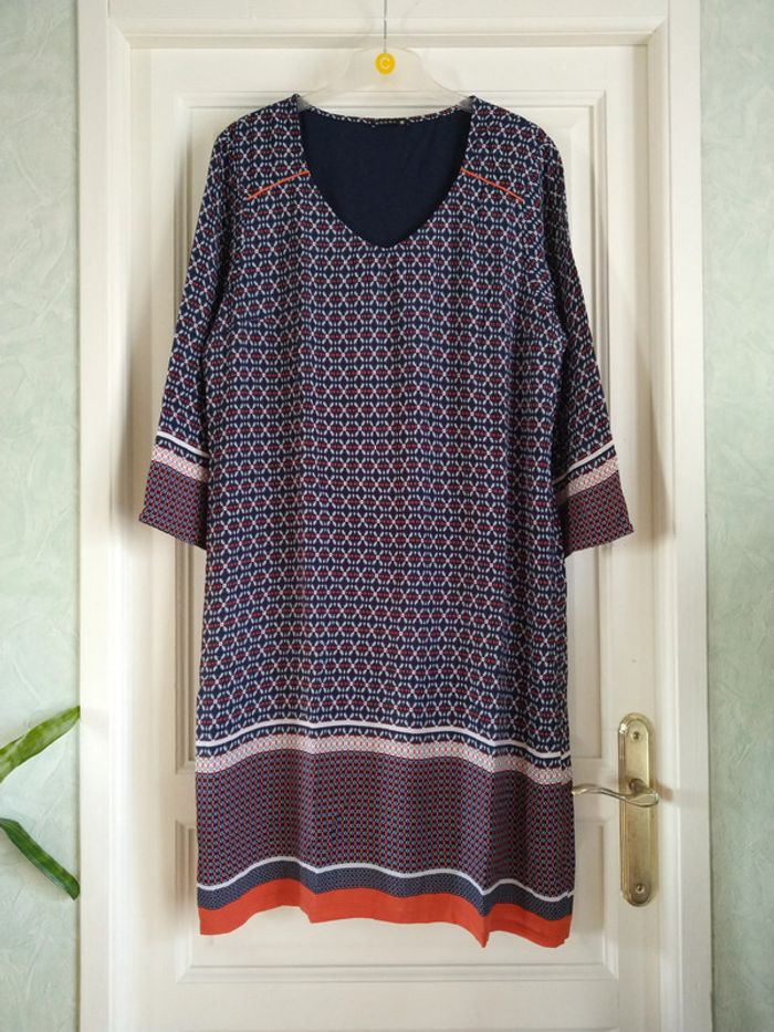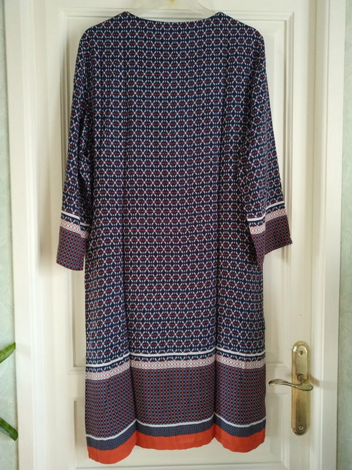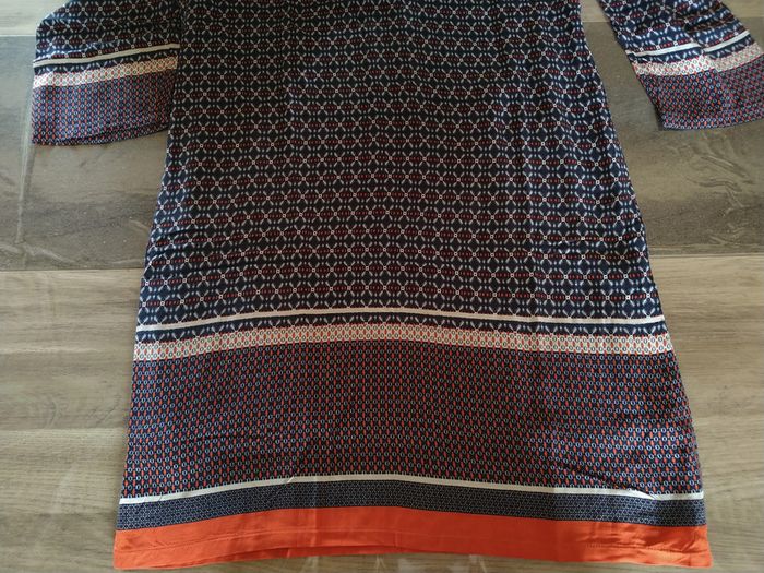 ⚠️ Description complète → Plus ⚠️ Robe à manches 3/4 Marque Bréal Taille 46 • Coloris marine, orange, blanc • Imprimés géométriques • Ceinture • Tissu fin • Doublure Largeur épaule à épaule non étirée : 42 cm Largeur épaule à épaule étirée au maximum : 47 cm Largeur aisselle à aisselle non étirée : 55 cm Largeur aisselle à aisselle étirée au maximum : 61 cm Longueur manche : 50 cm Longueur totale : 103 cm Longueur aisselle : 76 cm En très bon état #evelyne_taille_46