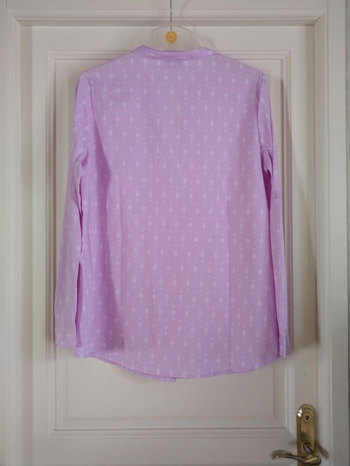 ⚠️ Description complète → Plus ⚠️ Chemise à manches longues Marque Bleu Bonheur Taille 40 • Coloris lila, crème • Imprimé • Fermeture par boutons • Manches rétractables • Tissu fin Largeur épaule à épaule non étirée : 38 cm Largeur épaule à épaule étirée au maximum : 43 cm Largeur aisselle à aisselle non étirée : 52 cm Largeur aisselle à aisselle étirée au maximum : 59 cm Longueur manche : 61 cm Longueur totale : 71 cm Longueur aisselle : 43 cm En très bon état #evelyne_taille_40