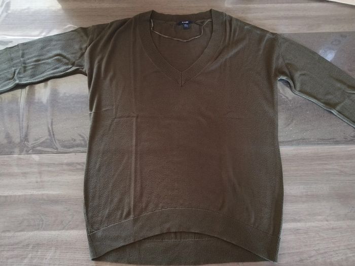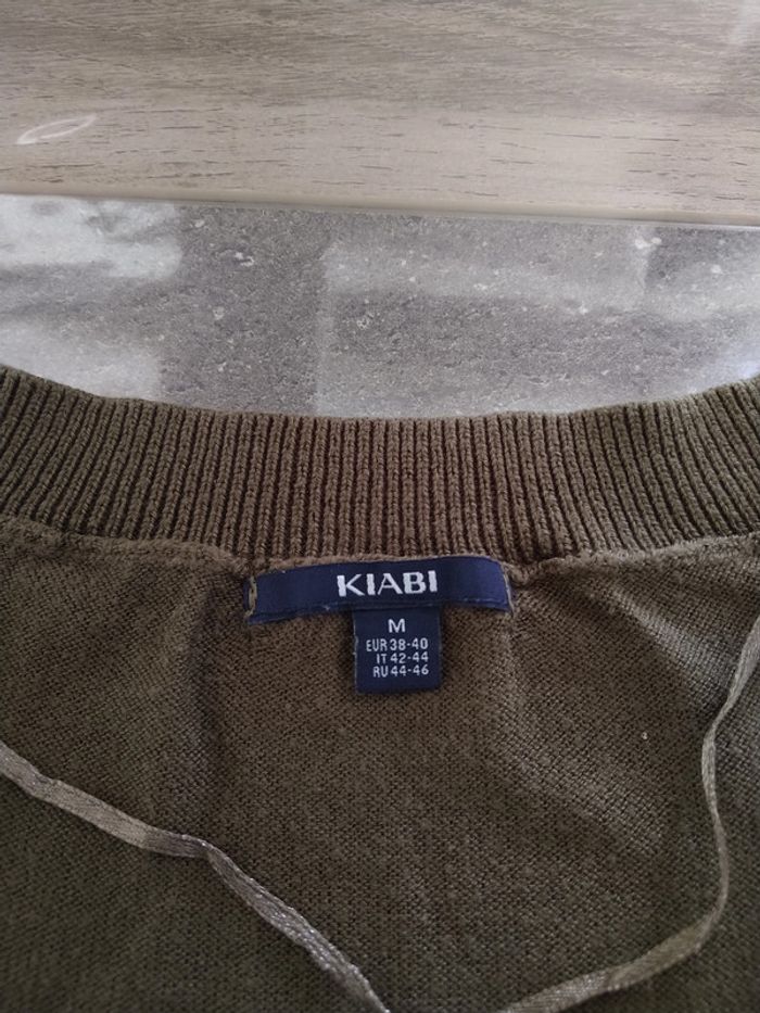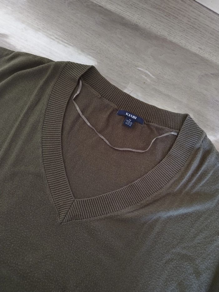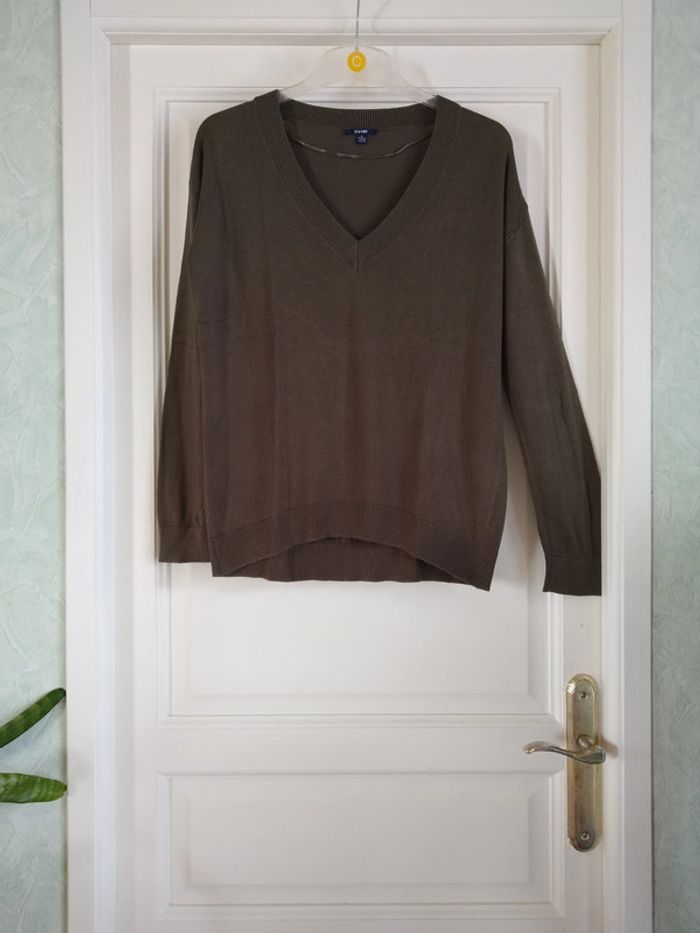 ⚠️ Description complète → Plus ⚠️ Pull à manches longues Marque Kiabi Taille M, 38-40 • Coloris kaki • Col V • Pull fin, léger • Quelques bouloches Largeur aisselle à aisselle non étirée : 52 cm Largeur aisselle à aisselle étirée au maximum : 83 cm Longueur manche : 53 cm Longueur totale : 59 cm Longueur aisselle : 46 cm Peu porté, en très bon état #evelyne_taille_38 #evelyne_taille_40