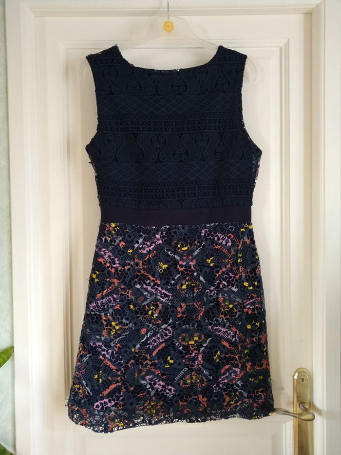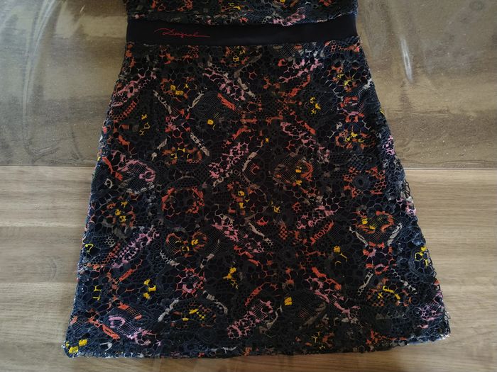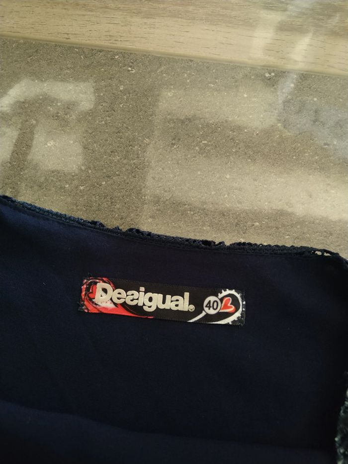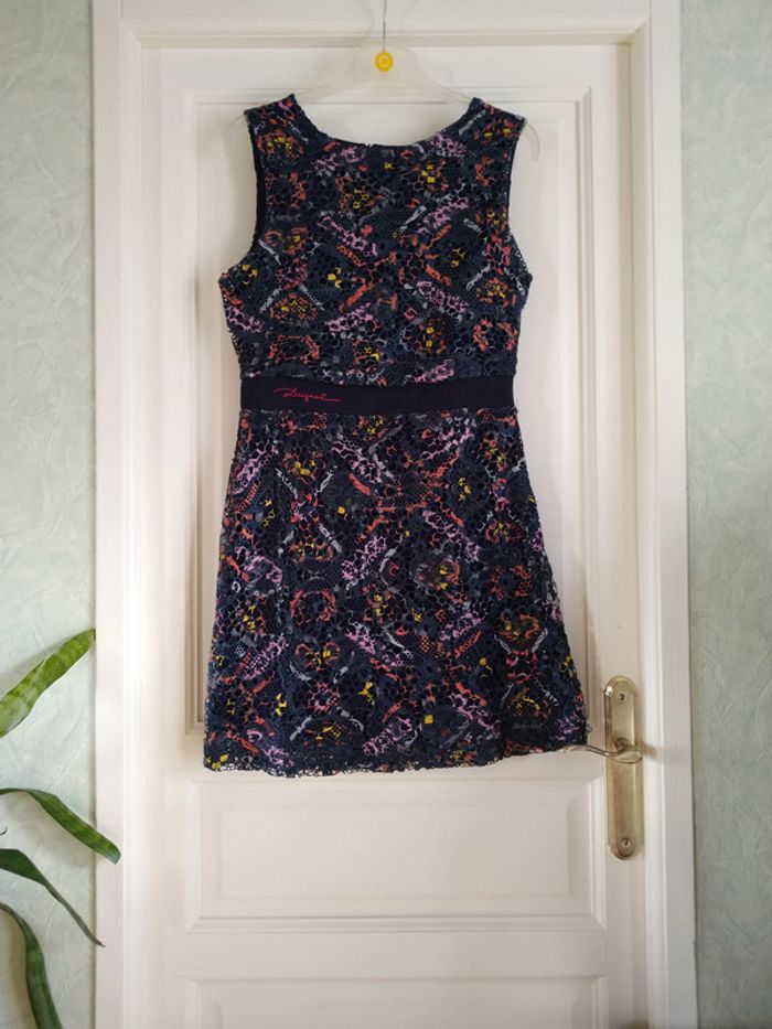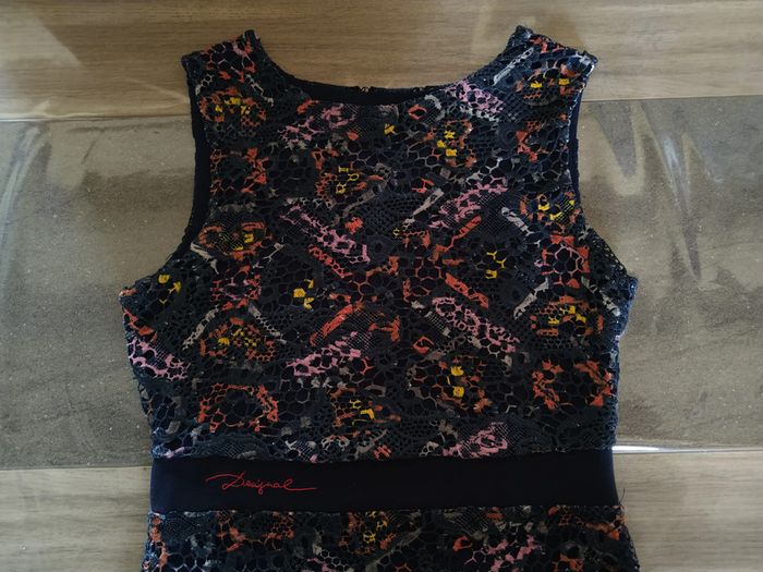 ⚠️ Description complète → Plus ⚠️ Robe sans manches Marque Desigual Taille 40 • Coloris marine, orange, jaune, rose... • Broderie • Taille élastique • Fermeture éclair sur le côté • Doublure • Quelques mailles broderie défaites Largeur aisselle à aisselle non étirée : 45 cm Largeur aisselle à aisselle étirée au maximum : 49 cm Longueur totale : 91 cm Longueur aisselle : 66 cm En très bon état #evelyne_taille_40