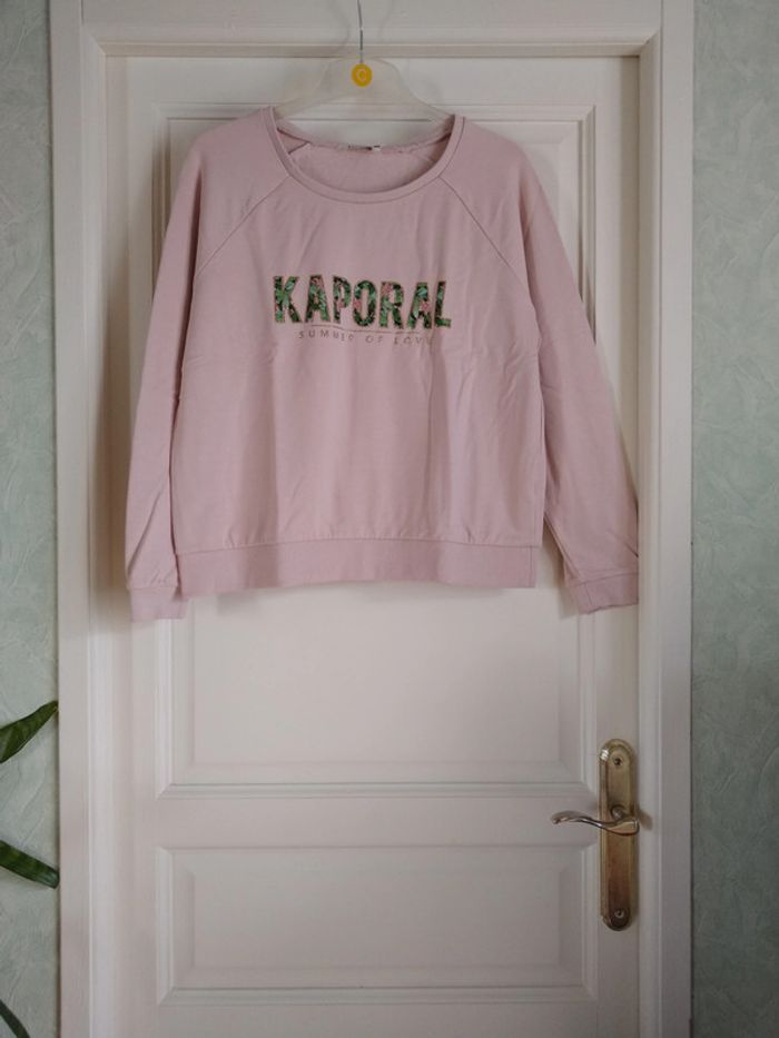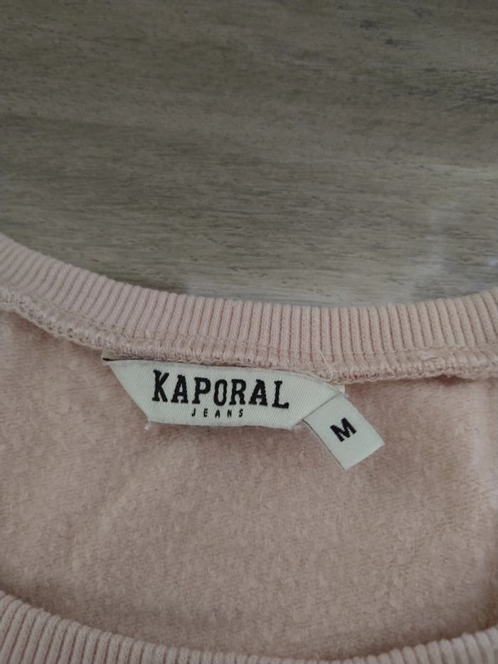 ⚠️ Description complète → Plus ⚠️ Pull/Sweat à manches longues Marque Kaporal Taille M, 38 • Coloris rose pâle/nude • Inscription "Kaporal summer of love" avec imprimé tropical et doré • Col rond • Intérieur molletonné, doux • Quelques bouloches Largeur épaule à épaule non étirée : Largeur épaule à épaule étirée au maximum : Largeur aisselle à aisselle non étirée : 53 cm Largeur aisselle à aisselle étirée au maximum : 71 cm Longueur totale : 57 cm Longueur aisselle : 36 cm En très bon état #evelyne_taille_38