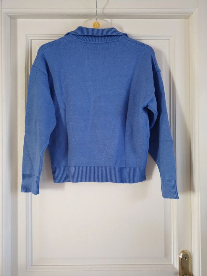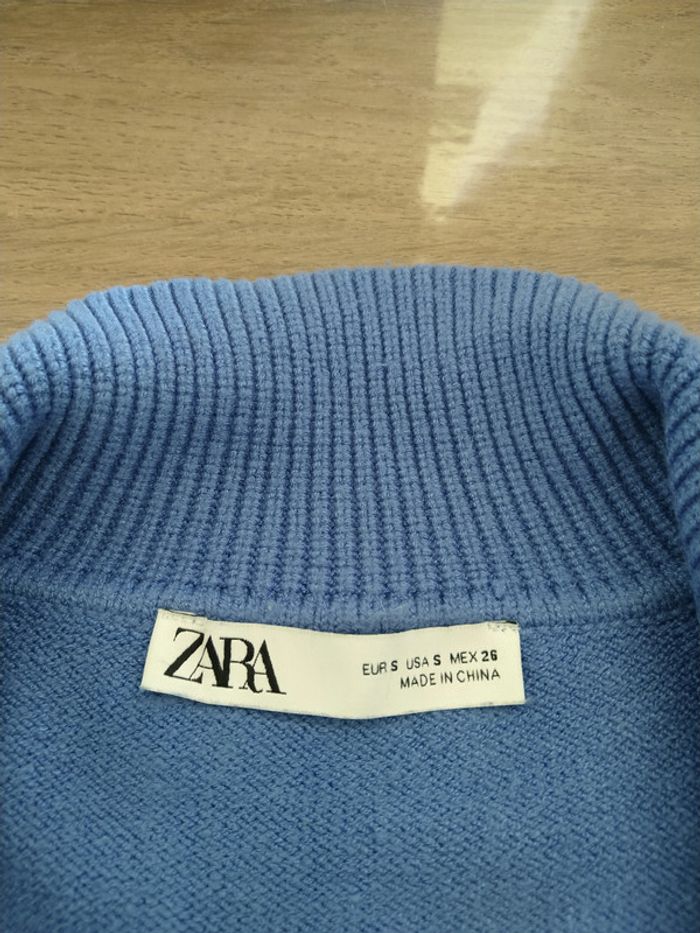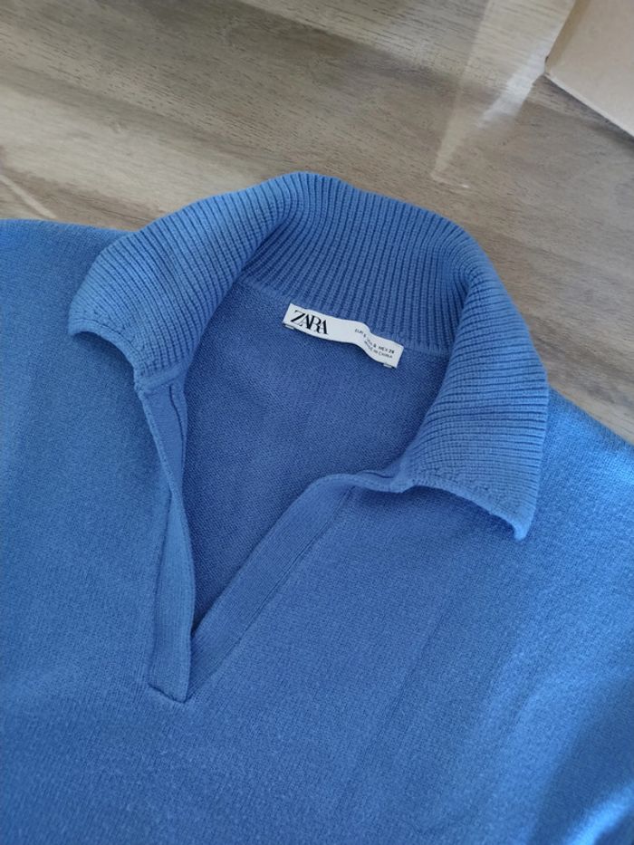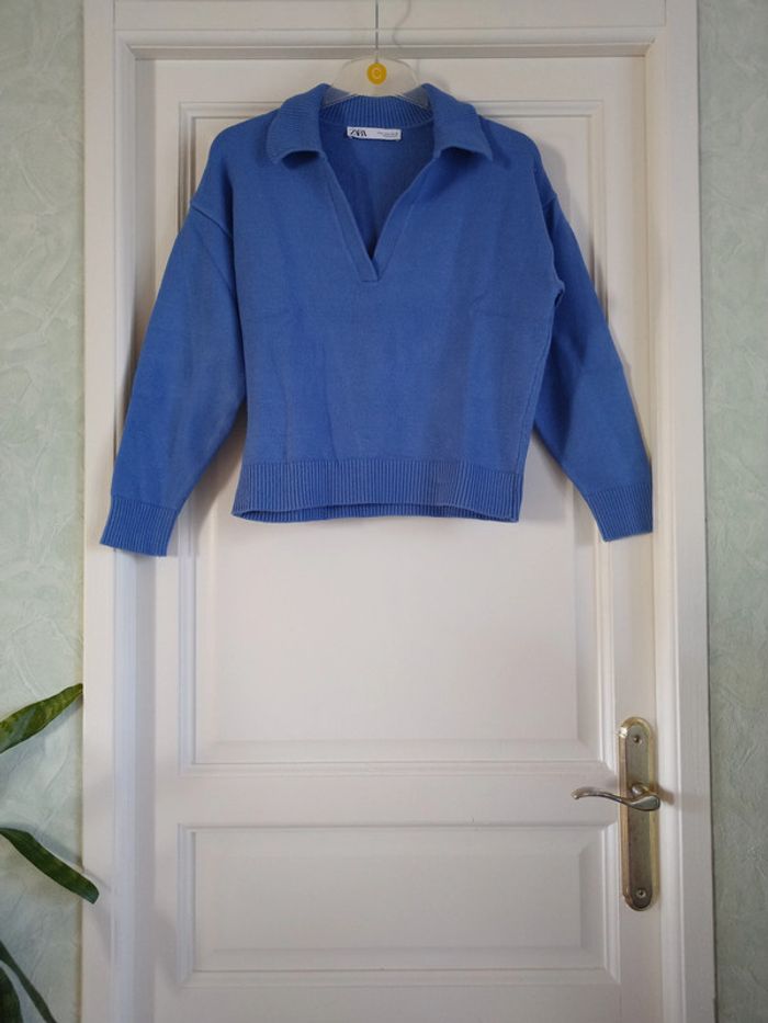⚠️ Description complète → Plus ⚠️ Pull à manches longues Marque Zara Taille S, 36 • Coloris bleu • Col ouvert • Quelques bouloches Largeur aisselle à aisselle non étirée : 49 cm Largeur aisselle à aisselle étirée au maximum : 89 cm Longueur totale : 52 cm Longueur aisselle : 29 cm En très bon état #evelyne_taille_36