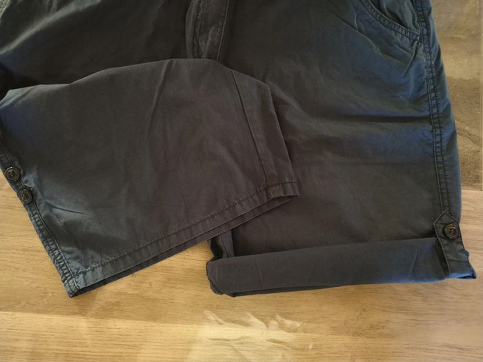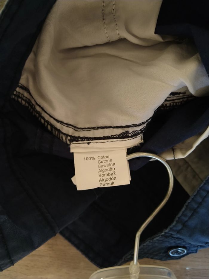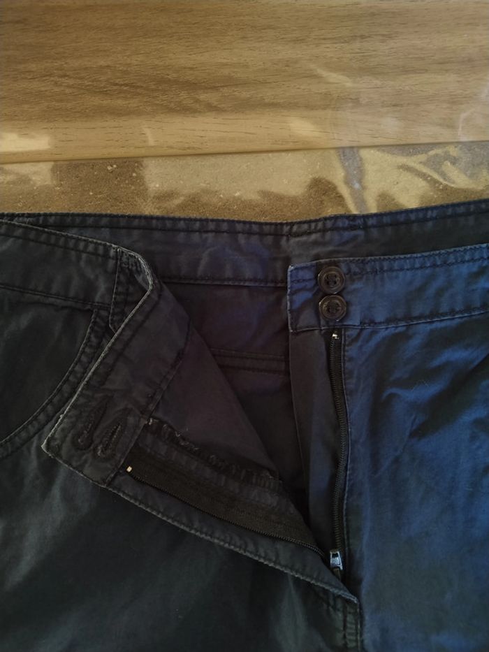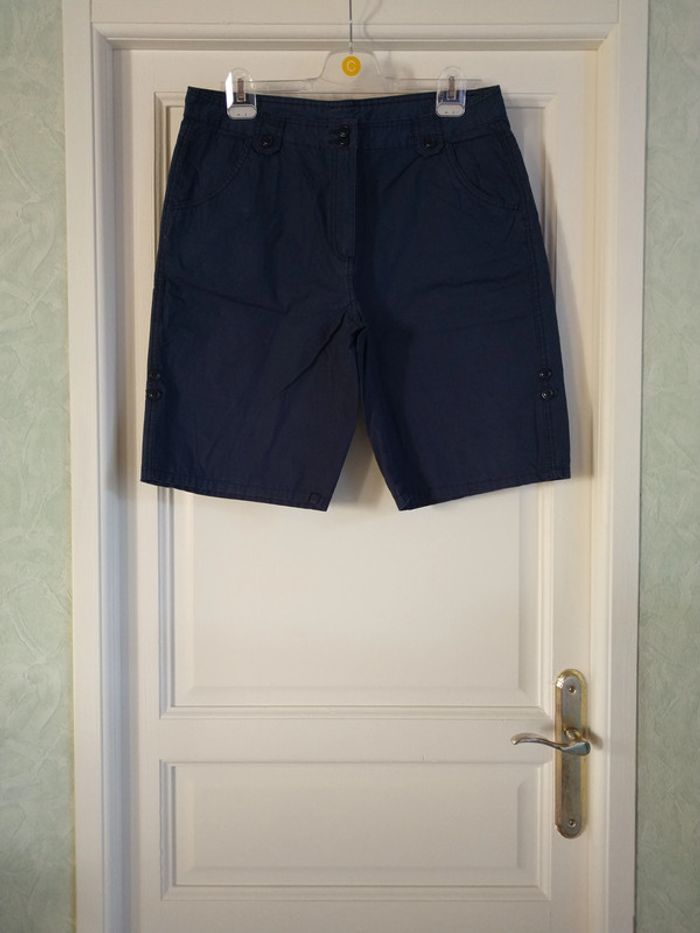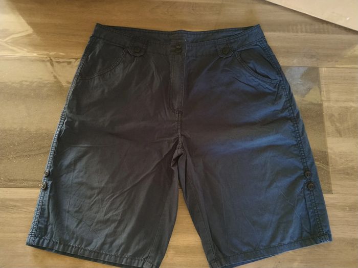 ⚠️ Description complète → Plus ⚠️ Short Marque Tissaia Taille 46, peut tailler petit • Coloris marine • Fermeture par fermeture éclair et boutons • 4 poches • Bas des jambes rétractable • Tissu fin • Coloris légèrement blanchi à certains endroits Largeur taille : 43 cm Largeur cuisses non étirée : 53 cm Largeur cuisses étirée au maximum : 57 cm Longueur totale : 54 cm Longueur entrejambe : 27 cm Largeur bas des jambes : 24 cm En très bon état #evelyne_taille_46