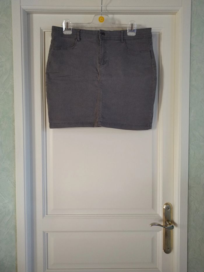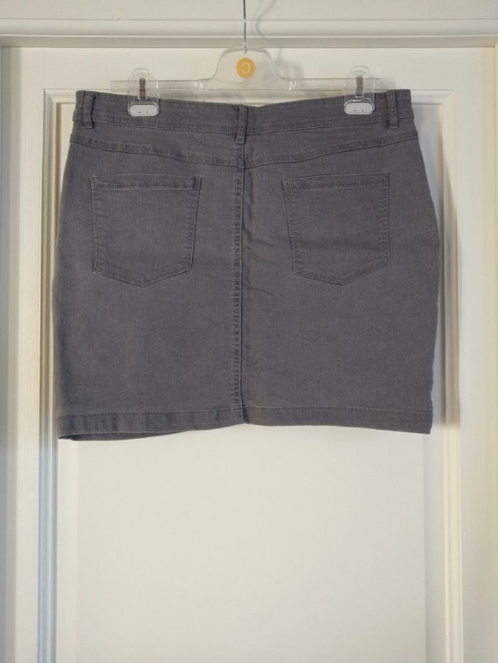 ⚠️ Description complète → Plus ⚠️ Jupe Marque Tissaia Taille 46 • Coloris gris • Fermeture par fermeture éclair et bouton • 4 poches • Stretch Largeur taille non étirée : 45 cm Largeur taille étirée au maximum : 54 cm Longueur totale : 45 cm En très bon état #evelyne_taille_46
