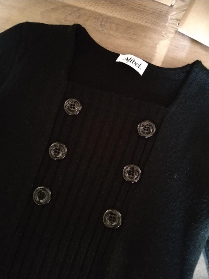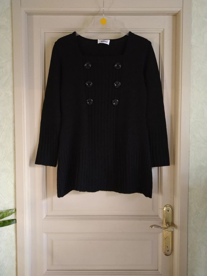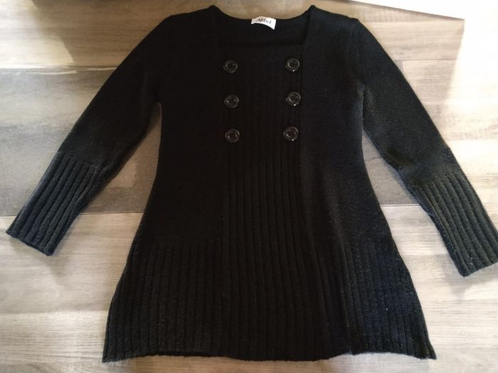 ⚠️ Description complète → Plus ⚠️ Pull d'hiver à manches longues Marque Afibel Taille 38-40 • Coloris noir • Boutons décoratifs • Mailles • Pull long partant en évasé • Stretch • Quelques bouloches Largeur épaule à épaule non étirée : 38 cm Largeur épaule à épaule étirée au maximum : 53 cm Largeur aisselle à aisselle non étirée : 44 cm Largeur aisselle à aisselle étirée au maximum : 67 cm Longueur manche : 56 cm Longueur totale : 69 cm Longueur aisselle : 49 cm En très bon état #evelyne_taille_38 #evelyne_taille_40