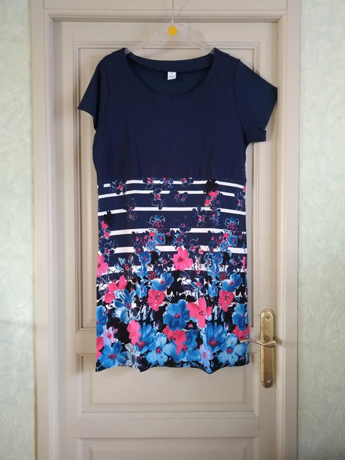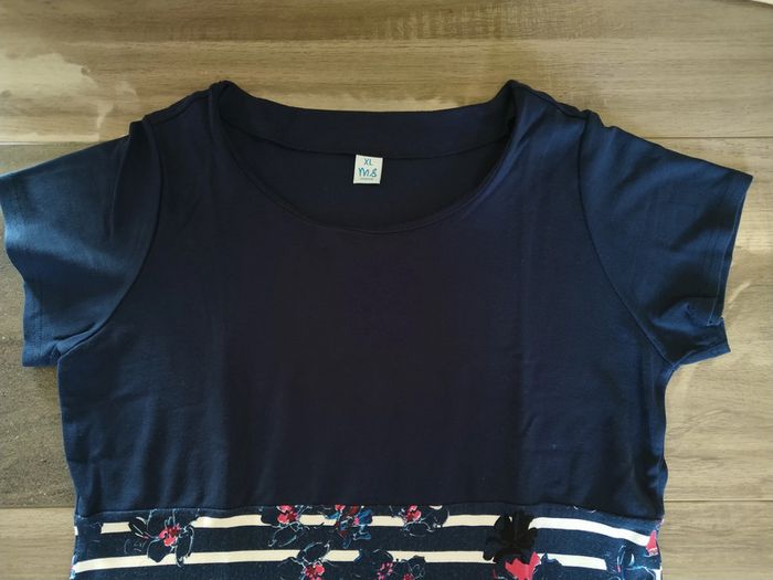 ⚠️ Description complète → Plus ⚠️ Robe à manches courtes Marque M&S Mode Taille XL, 42 • Coloris marine, blanc, bleu, rose • Imprimés rayures, fleurs sur le bas • Sans doublure • Partie imprimée boulochée Largeur épaule à épaule non étirée : 39 cm Largeur épaule à épaule étirée au maximum : 53 cm Largeur aisselle à aisselle non étirée : 53 cm Largeur aisselle à aisselle étirée au maximum : 74 cm Longueur totale : 91 cm Longueur aisselle : 69 cm En très bon état #evelyne_taille_42