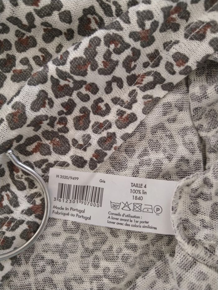 ⚠️ Description complète → Plus ⚠️ Blouse à manches 3/4 Marque Monoprix Femme Taille 4, correspond à une taille 44-46 sur le site • Coloris kaki, gris crème • Imprimé léopard • Tissu fin • 100% lin Largeur aisselle à aisselle non étirée : 52 cm Largeur aisselle à aisselle étirée au maximum : 73 cm Longueur totale : 66 cm Longueur aisselle : 41 cm En très bon état #evelyne_taille_44 #evelyne_taille_46