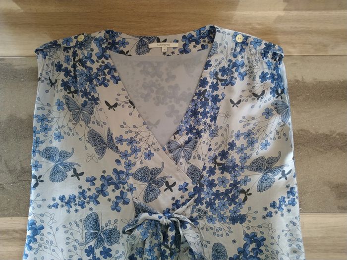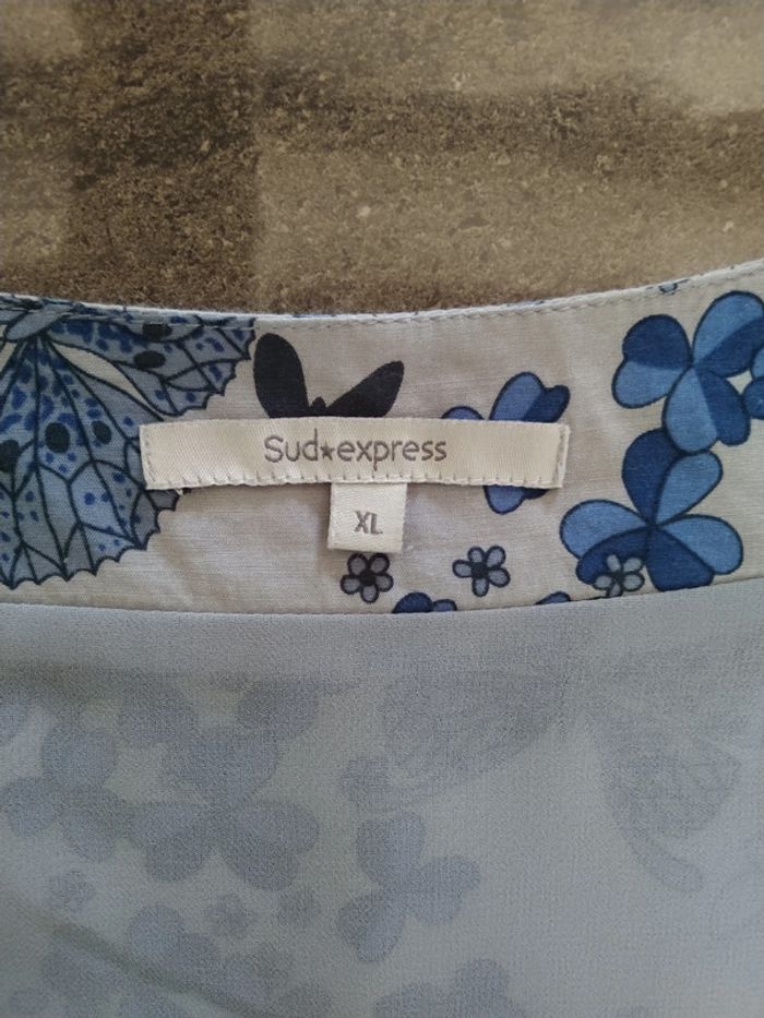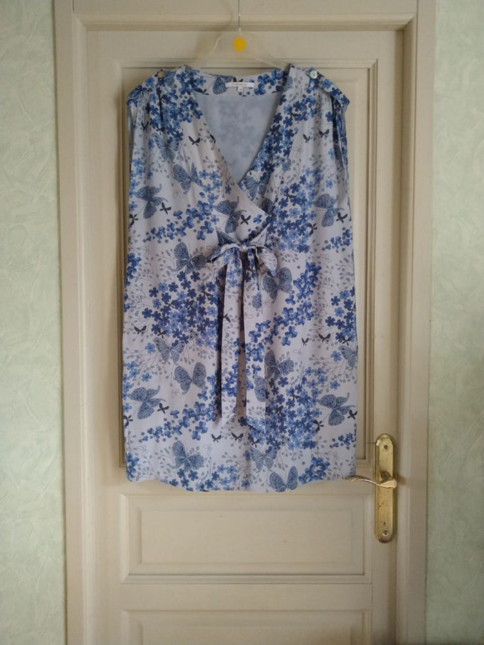 ⚠️ Description complète → Plus ⚠️ Robe sans manches Modèle Ridalia Marque Sud Express Taille XL, 42 • Coloris bleu, marine • Imprimés fleurs, papillons • Nœud à nouer à la taille • Détails aux épaules • Doublure • Plusieurs fils de tirés, notamment au col • Quelques bouloches • 70% viscose, 30% soie, doublure : 100% polyester Largeur aisselle à aisselle : 51 cm Longueur totale : 90 cm Longueur aisselle : 60 cm En bon état #evelyne_taille_42