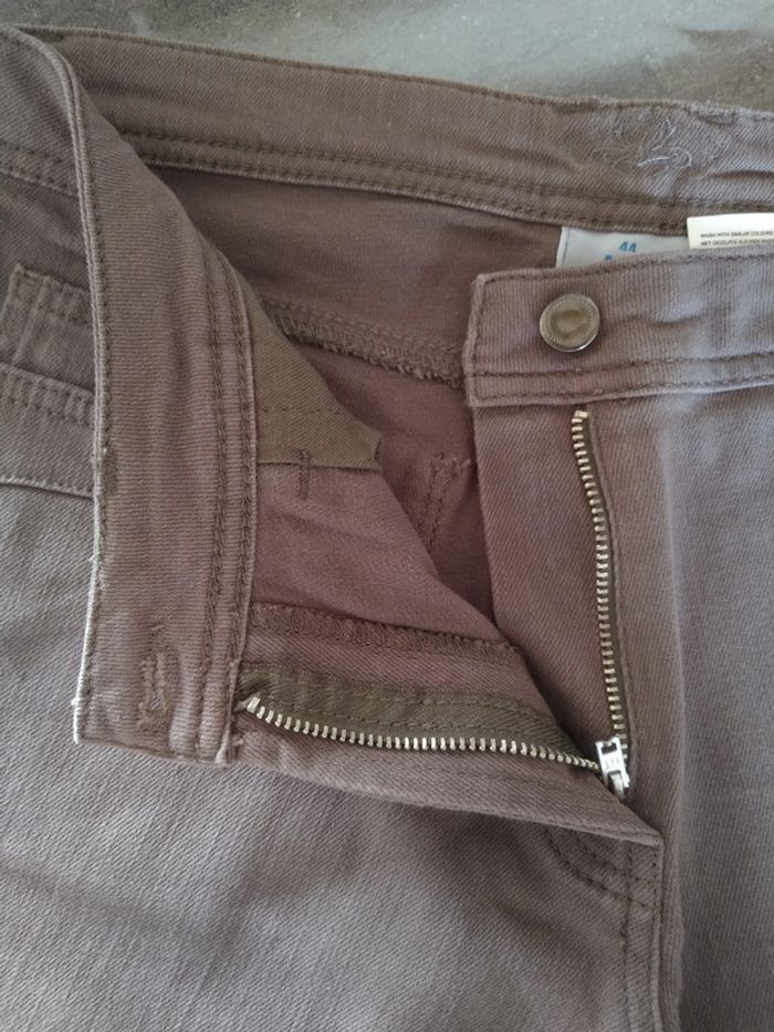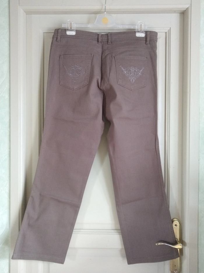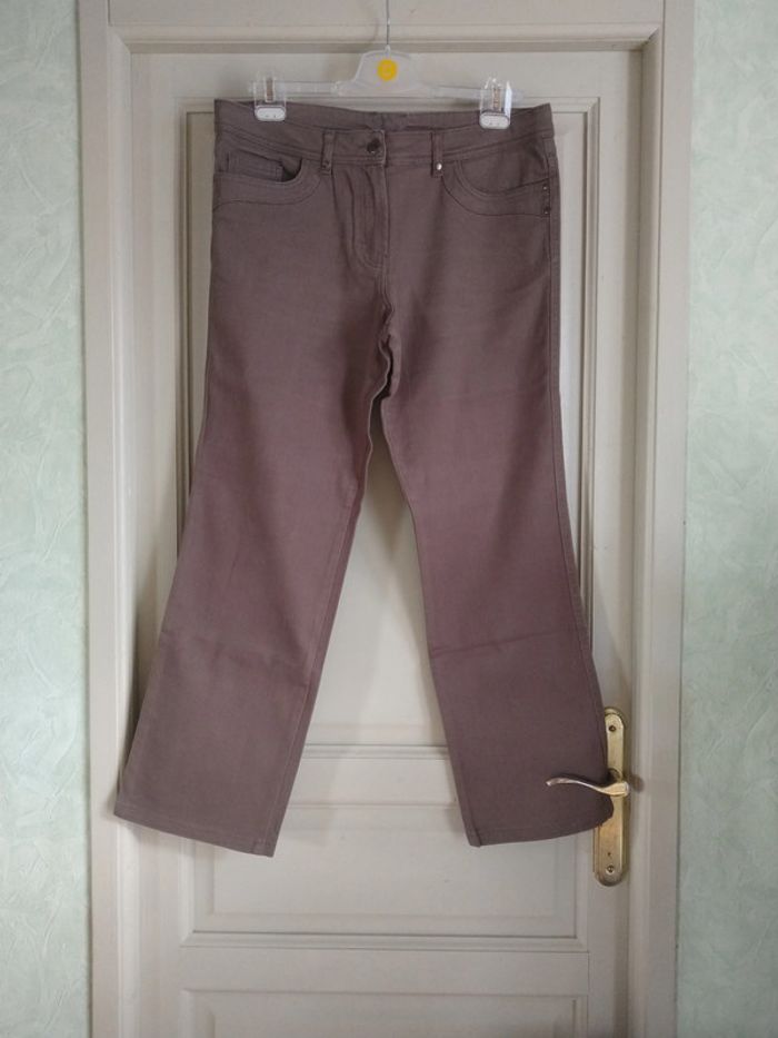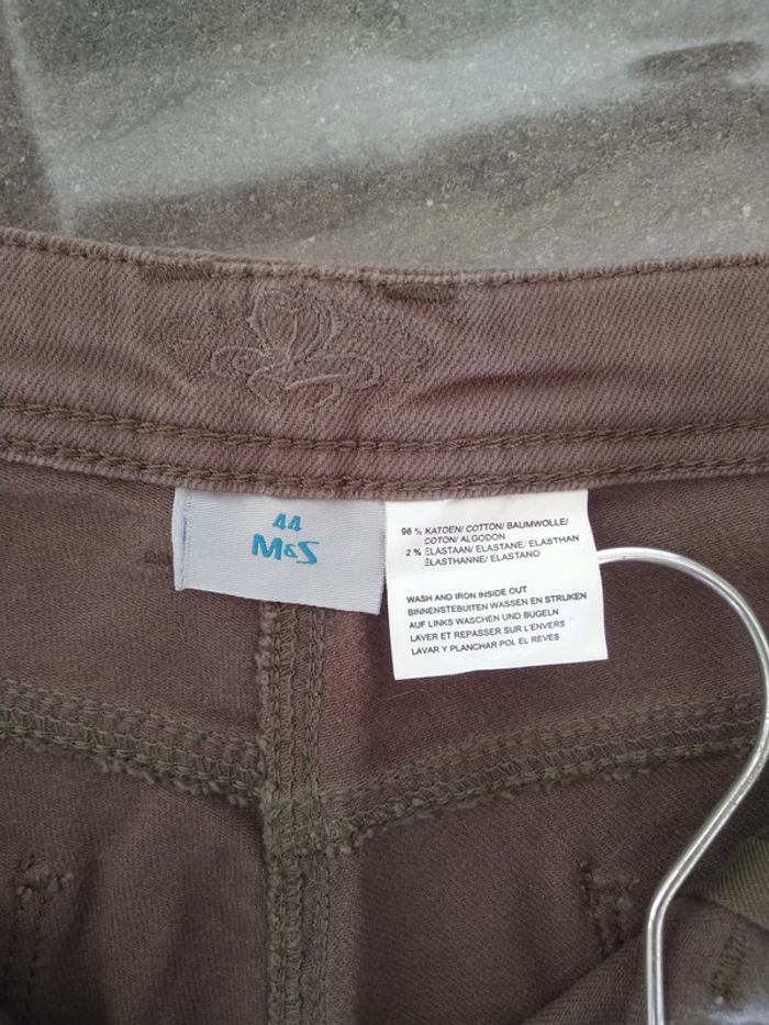 ⚠️ Description complète → Plus ⚠️ Pantalon jean Marque M&S Mode Taille 44 • Coloris kaki (différent des photos) • Fermeture par fermeture éclair et bouton • 4 poches • Détails aux poches arrières • Manque un strass Largeur taille non étirée : 44 cm Largeur taille étirée au maximum : 49 cm Longueur totale : 95 cm Longueur entrejambe : 74 cm Largeur bas des jambes : 21 cm En très bon état #evelyne_taille_44
