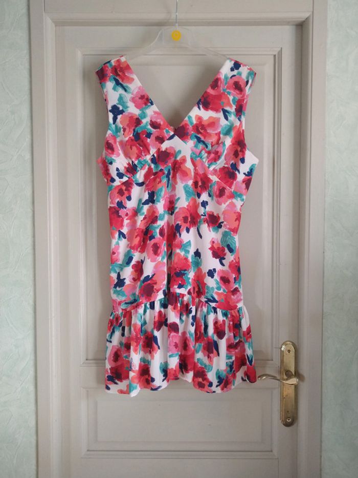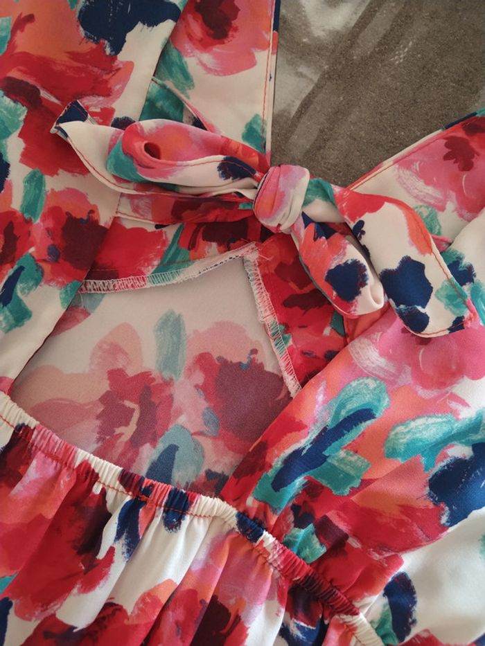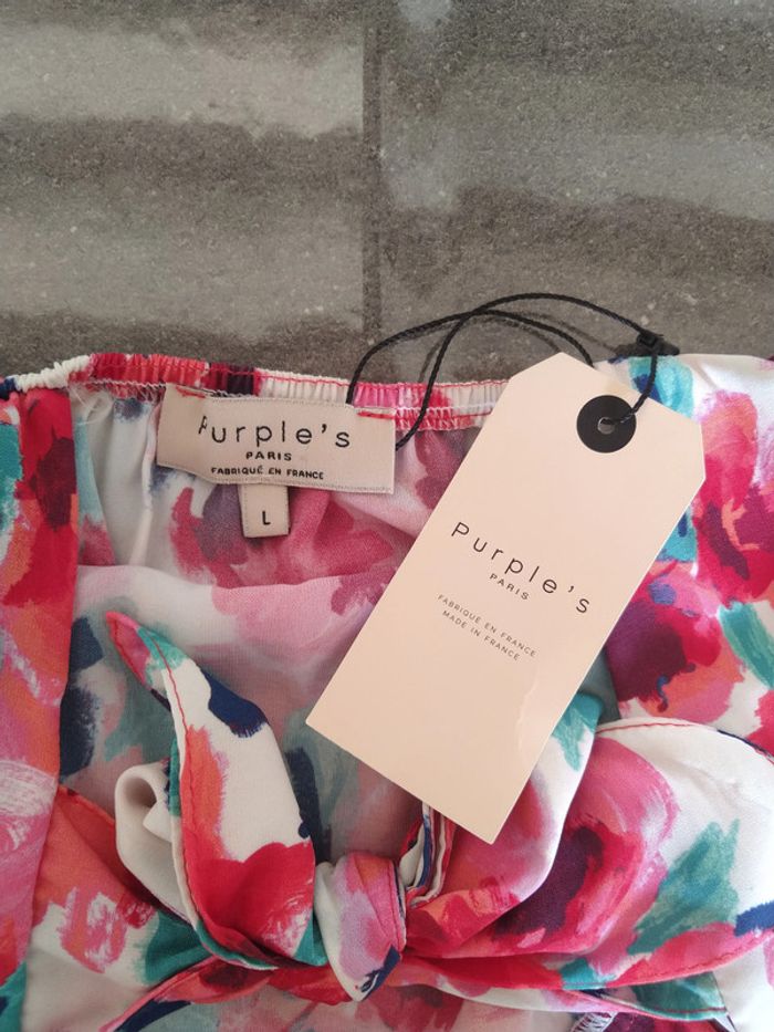 ⚠️ Description complète → Plus ⚠️ Robe d'été à larges bretelles Modèle Eva, esprit du Sud Marque Purple's Taille L, 40 • Coloris multicolore : crème, rose, vert, bleu, rouge, orange • Imprimés fleurs • Dos nu avec nœud à nouer • Élastique au dos • Fronces sur le bas • Tissu fin, fluide Largeur aisselle à aisselle non étirée : 47 cm Largeur aisselle à aisselle étirée au maximum : 56 cm Longueur totale : 88 cm Longueur aisselle : 64 cm Neuve #evelyne_taille_40
