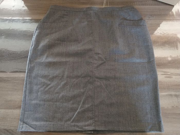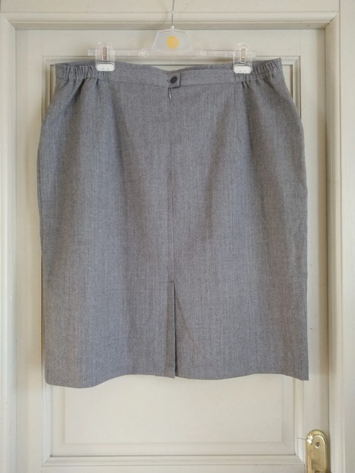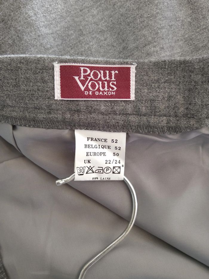 ⚠️ Description complète → Plus ⚠️ Jupe Marque Pour Vous de Daxon Taille 52 • Coloris gris • Fermeture par fermeture éclair et bouton au dos • Taille élastique sur les côtés • 2 poches • Fendue à l'arrière • Doublure • Tissu extérieur légèrement stretch • 98% laine Largeur taille non étirée : 48 cm Largeur taille étirée au maximum : 53 cm Longueur totale : 66 cm En très bon état #evelyne_taille_52