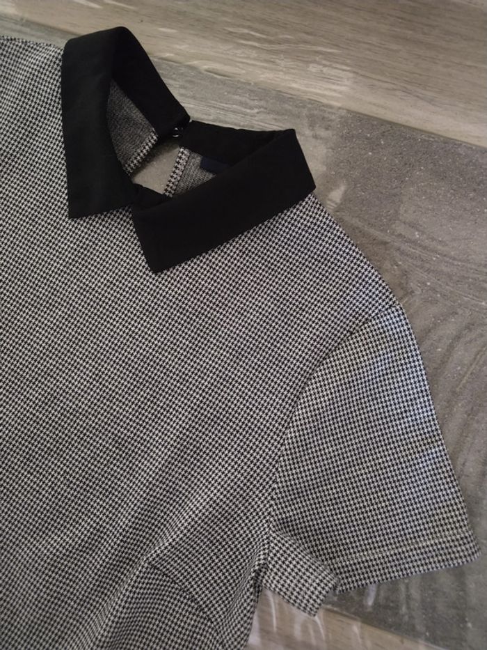 ⚠️ Description complète → Plus ⚠️ T-shirt à manches courtes Marque Kiabi Taille S, 34-36 • Coloris gris, noir • Imprimés pied-de-poule • Goutte au dos avec bouton • Col chemise • Stretch Largeur épaule à épaule non étirée : 36 cm Largeur épaule à épaule étirée au maximum : 49 cm Largeur aisselle à aisselle non étirée : 44 cm Largeur aisselle à aisselle étirée au maximum : 61 cm Longueur totale : 57 cm Longueur aisselle : 35 cm En très bon état #evelyne_taille_34 #evelyne_taille_36