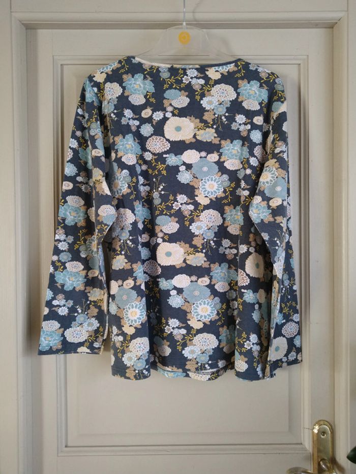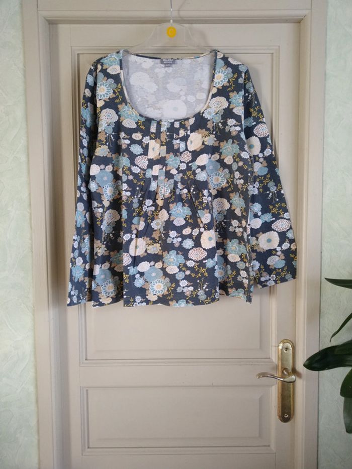 ⚠️ Description complète → Plus ⚠️ Blouse/T-shirt à manches longues Marque Bleu Bonheur Taille 50-52 • Coloris marine foncé, bleu, jaune, blanc • Imprimés fleurs • Fronces sur le devant • Stretch • Les couleurs sont légèrement passées Largeur épaule à épaule non étirée : 44 cm Largeur épaule à épaule étirée au maximum : 60 cm Largeur aisselle à aisselle non étirée : 57 cm Largeur aisselle à aisselle étirée au maximum : 70 cm Longueur totale : 66 cm Longueur aisselle : 41 cm En bon état Sans trous ni taches #evelyne_taille_50 #evelyne_taille_52