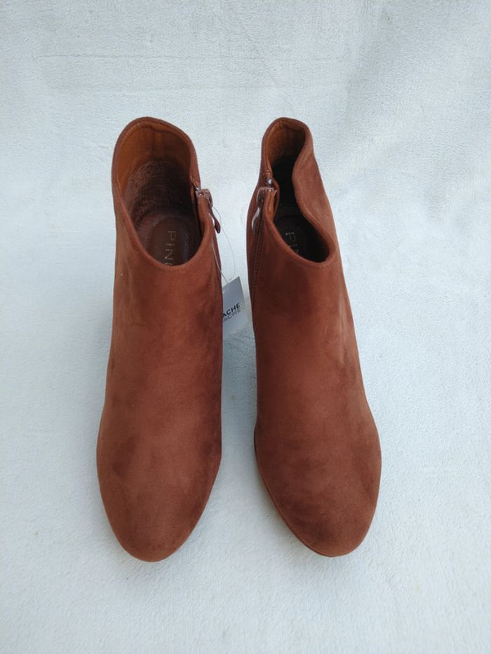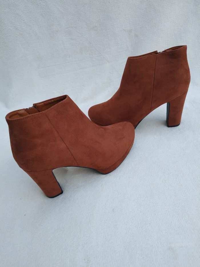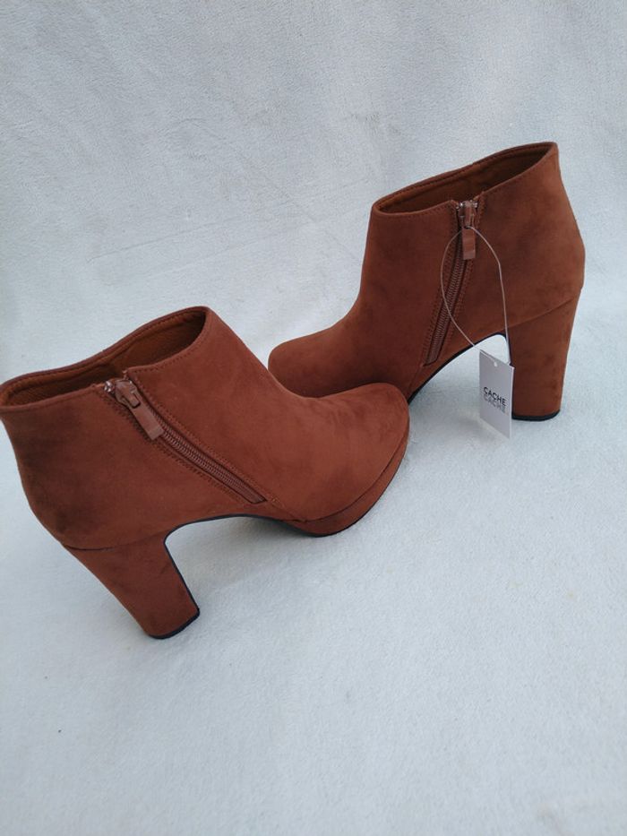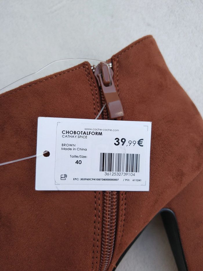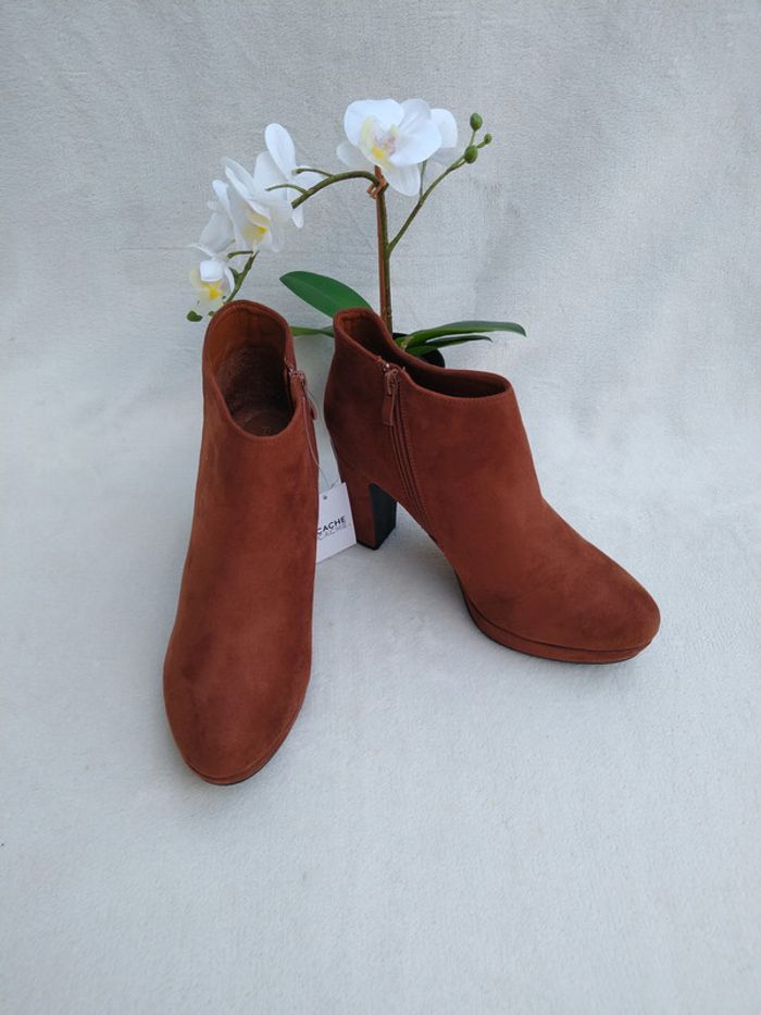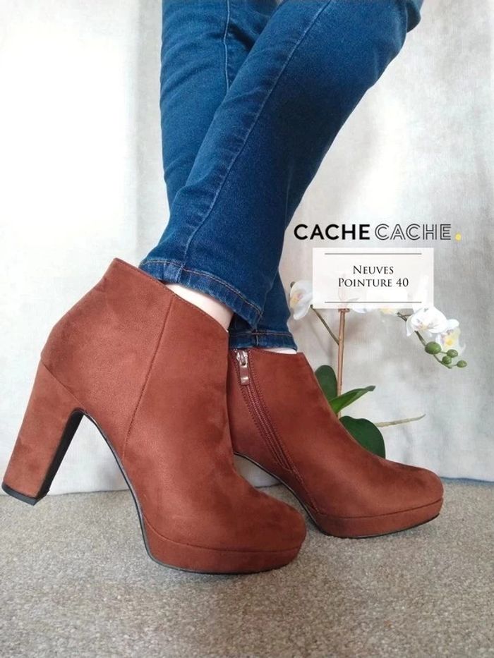 ⚠️ Description complète → Plus ⚠️ Bottines à talons Marque Cache Cache Pointure 40 qui taille un petit 40 • Coloris marron • Fermeture par fermeture éclair • Texture daim sur toute la chaussure • Intérieur finement fourré • Confortables • Petite marque noire à l'arrière d'un talon Hauteur de talons : 9,5 cm Neuves Achetées 39.99€ #evelynechaussures40