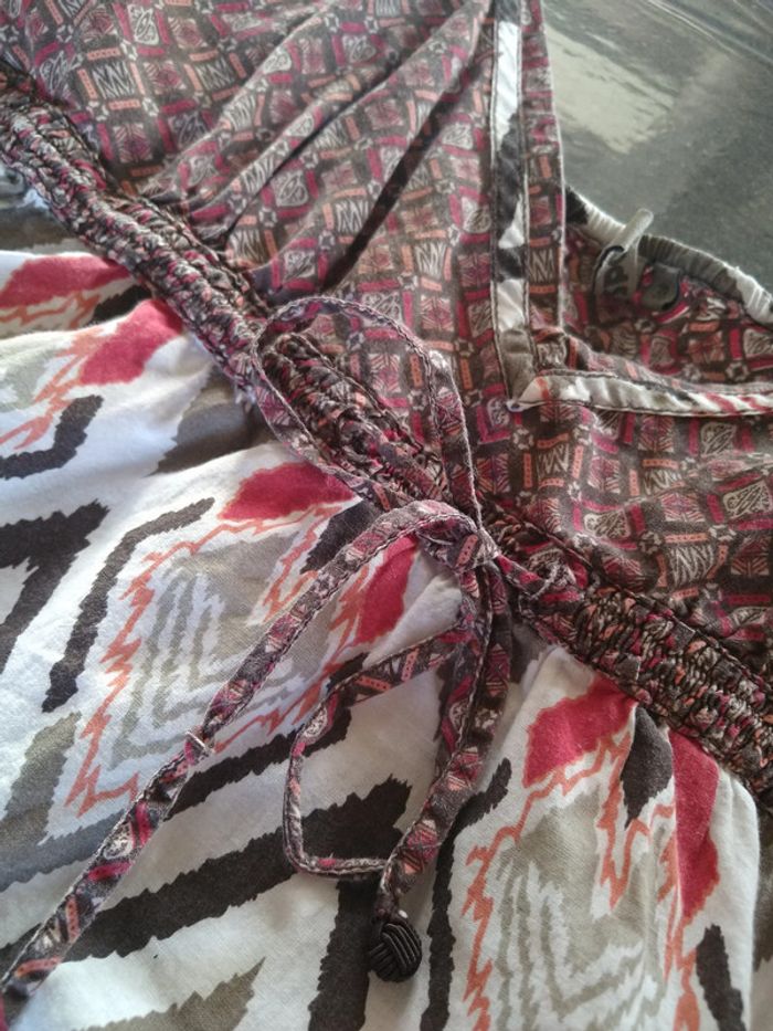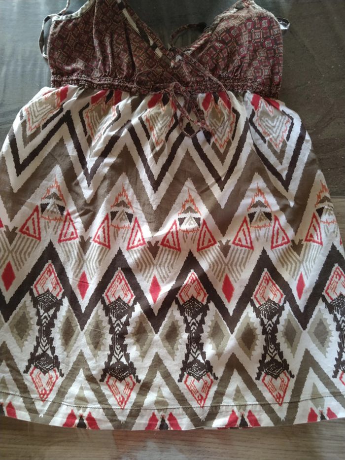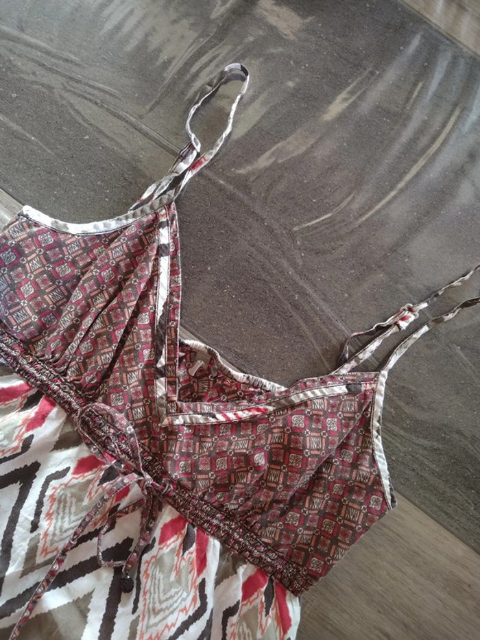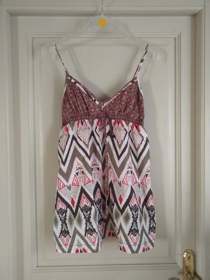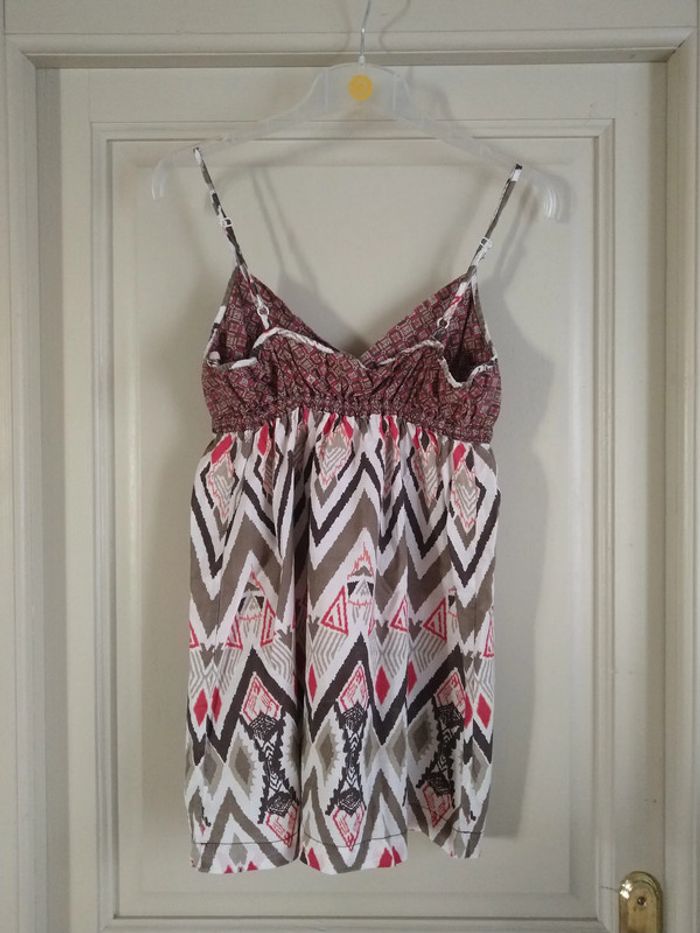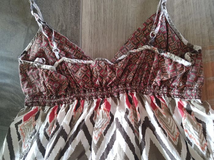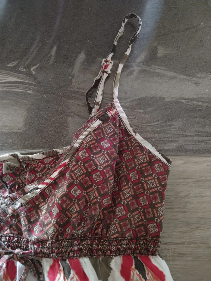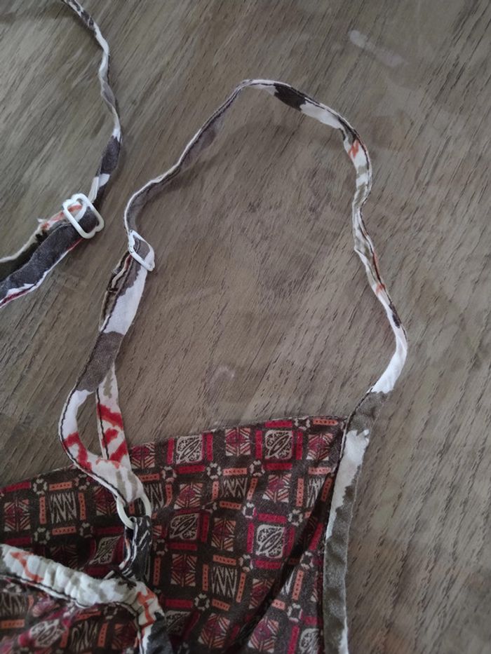 ⚠️ Description complète → Plus ⚠️ Débardeur à bretelles Marque Spot Taille 38 • Coloris multicolore : blanc, kaki, rouge, marron... • Imprimés/Motifs divers • Bretelles réglables • Élastique sous la poitrine avec cordon • Tissu léger, souple • Non stretch • Étiquette intérieure coupée • Quelques fils de tirés, discrets • Peinture écaillée sur l'anneau des bretelles Largeur aisselle à aisselle non étirée : 35 cm Largeur aisselle à aisselle étirée au maximum : 49 cm Longueur totale : 74 cm Longueur aisselle : 53 cm Porté quelques fois, en très bon état #evelyne_taille_38