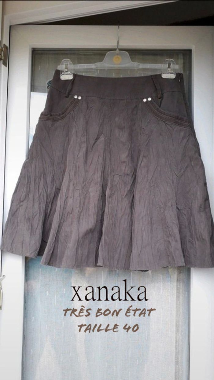 Jupe plissée marron Marque Xanaka Taille 40 2 poches avant, possibilité de mettre une ceinture, doublure intérieure Légère et douce En très bon état, sans défauts apparents Largeur taille : 39 cm Longueur totale : 55 cm #evelyne_taille_40