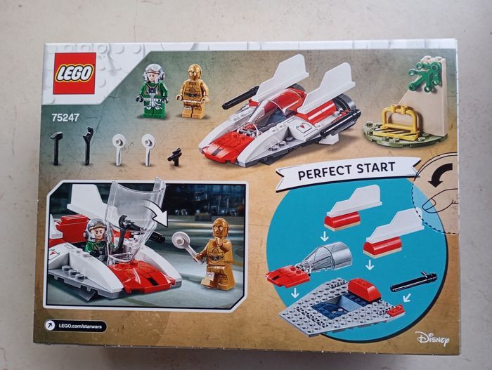 Boîte neuve jamais ouverte Boîte 75247 Prépare-toi pour une autre mission audacieuse dans le chasseur stellaire A-wing super rapide. Aide le sympathique droïde C-3PO à le vérifier à la station-service. Assois ensuite le pilote dans le poste de pilotage, démarre les moteurs et prépare-toi pour le décollage ! Les ensembles LEGO® 4+ sont spécialement conçus pour être amusants et faciles pour les jeunes enfants et les aider à développer leur confiance en eux avec des instructions de montage simples pour une entrée parfaite dans la construction en briques LEGO. Inclut 2 figurines LEGO® Star Wars™ : un pilote d'A-Wing et le droïde légendaire, C-3PO. Cet ensemble comprend un chasseur stellaire A-Wing facile à construire et une mini station-service avec une barrière, une clé et d'autres petits détails. L’A-wing, comme on le voit dans le film à succès Star Wars™ : Un Nouvel espoir, comprend un poste de pilotage pour asseoir le pilote et une base de construction rapide pour que votre enfant puisse construire et jouer rapidement dans un cadre LEGO® Star Wars passionnant. Comprend également le pistolet blaster du pilote de l'A-Wing et des balises pour que C-3PO guide l'A-wing.
