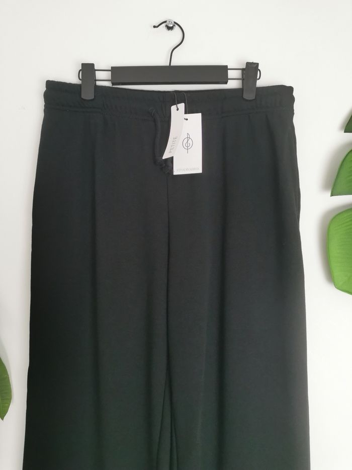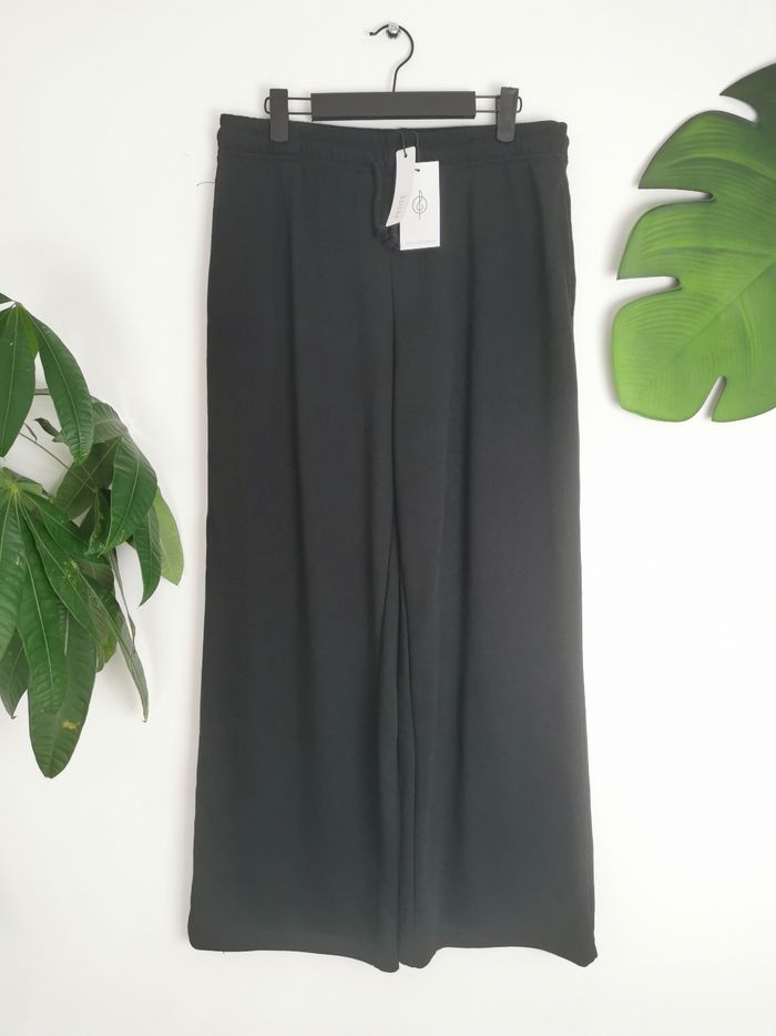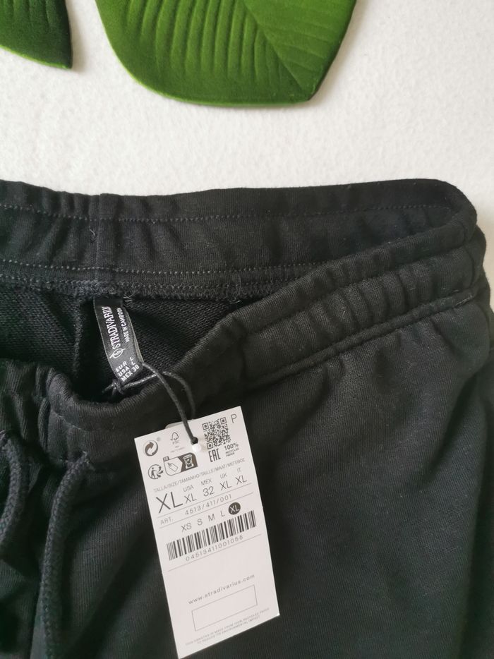 🙎‍♀️ ÉTAT DE L'ARTICLE: 10/10 ✅️ Avec étiquette 🔖, jamais porté Pantalon jogger 👩 Stradivarius Taille L Petite (⚠️ Mauvais étiquetage 🏷️ Taille XL sur l'étiquette) • Matière: 60% polyester - 40% coton • Coupe jambes larges • Taille elastiquée avec cordons de serrage • 2 poches latérales • Couleur: Noir ⚫️ • 📏 Longueur: 101 cm • 📏 Mesure taille à plat: 38 cm étirable Parfait état👌, avec étiquette🏷️, jamais porté 📎