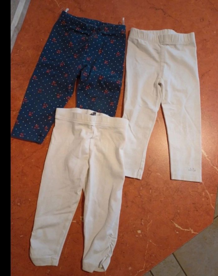 Lot comprenant 2 pantalons 1 salopette courte 4 leggings 1 jupe 5 robes 1 pyjama fin avec pieds 1 pyjama fin sans pieds 4 bodies manches courtes 4 débardeurs 4 T.shirts manches courtes Différentes marques : kiabi, disney, bout chou, tex, tim pouce, mng... Possibilité d avoir plus de photos