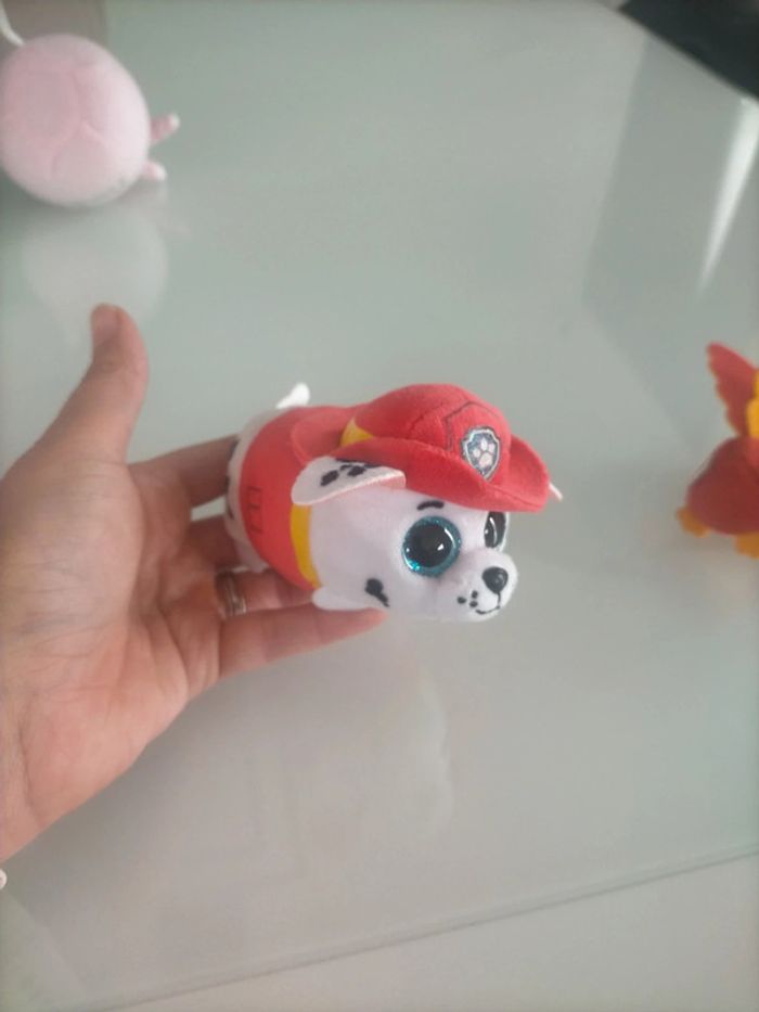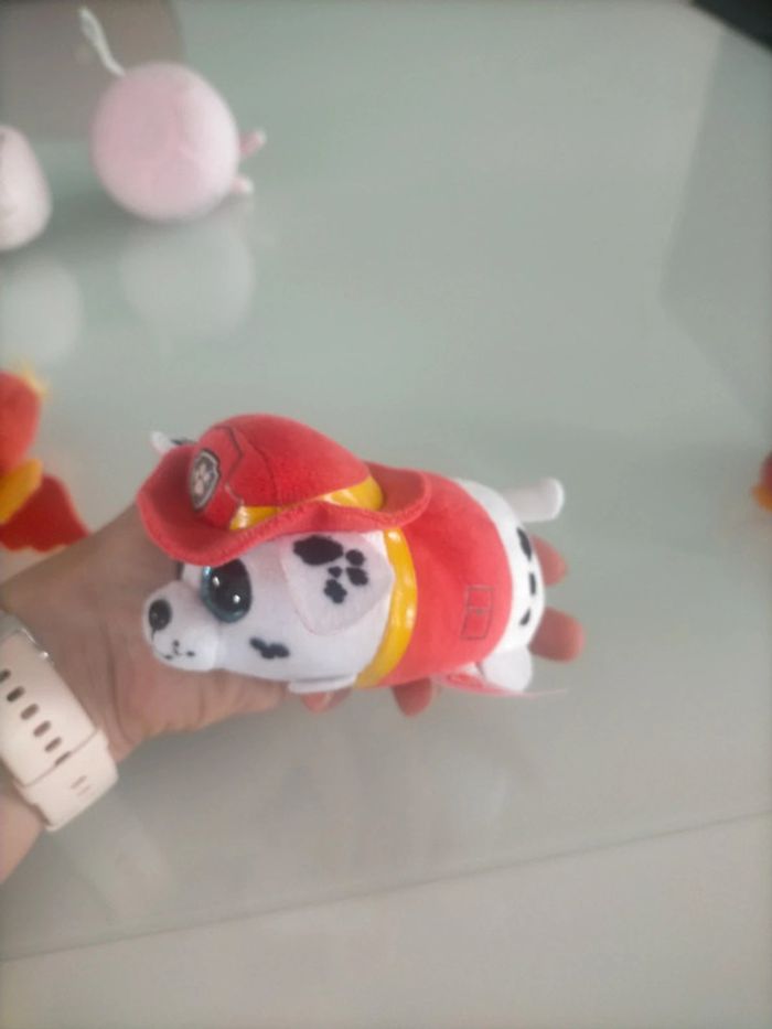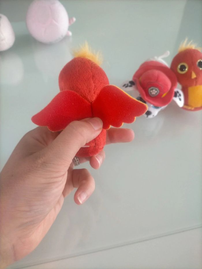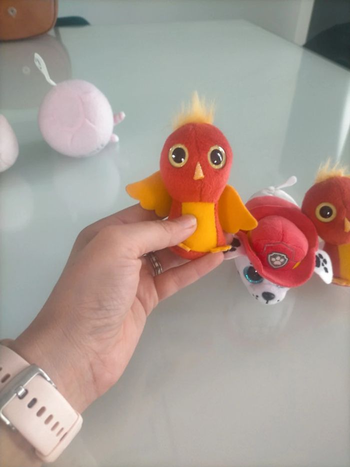 Lot de 3 mini doudou : 2 oiseau et Marcus de la pat'patrouille. Peut servir à remplir un calendrier de l'avent