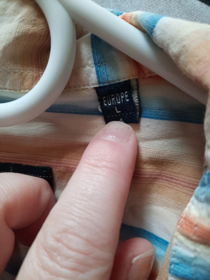 Très bon état Lavée mais à repasser Trois Minis tâches à l'intérieur près de l'étiquette mais qui ne se voient pas dans le dos . Voir photos #debbyscrapchemisette #debbyscrapvêtementhomme #debbyscrap_l